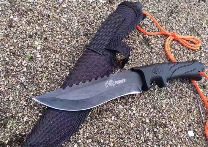 老狼323战术直刀 全 长:21cm 刃 长:10cm 刃 宽:3.6cm(最宽处) 刃 厚:3.9mm 柄 长:9cm 表 面:发黑 刃 材:3CR13 硬 度:57HRC 重 量:205克(含包装) 包 装:尼龙套
