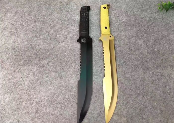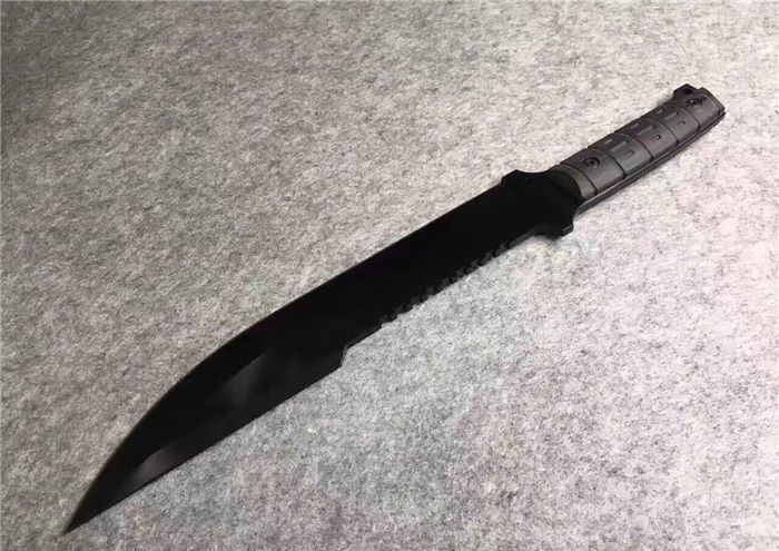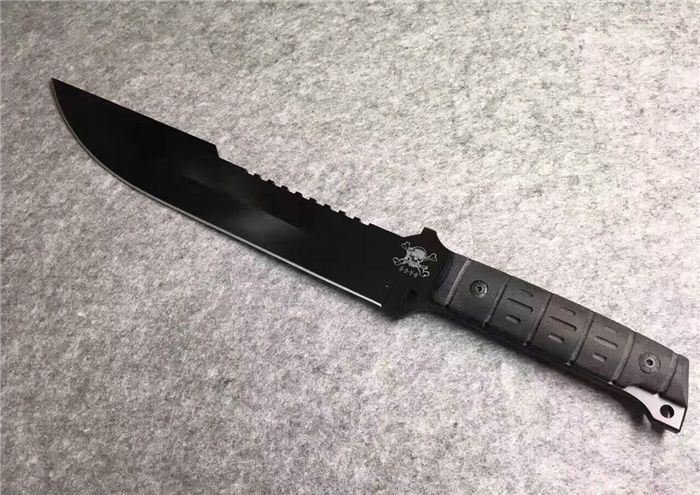 海盗船直刀 全 长:44.1mm 刃 长:290mm 柄 长:142mm 刃 宽:4.9mm 刃 厚:4.8mm 刃 材:7Cr17Mov 重 量:1005g(含包装) 硬 度:57HRC 表 面:黑钛 柄 材:ABS 锁 型:定锁 其 他:配尼套和硬纸盒