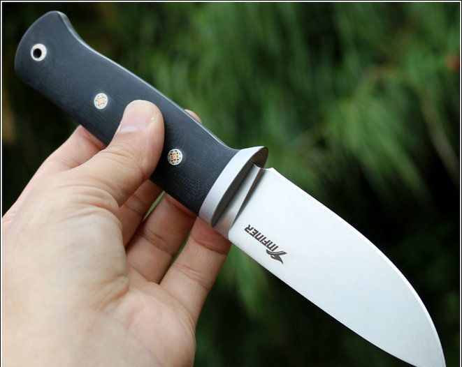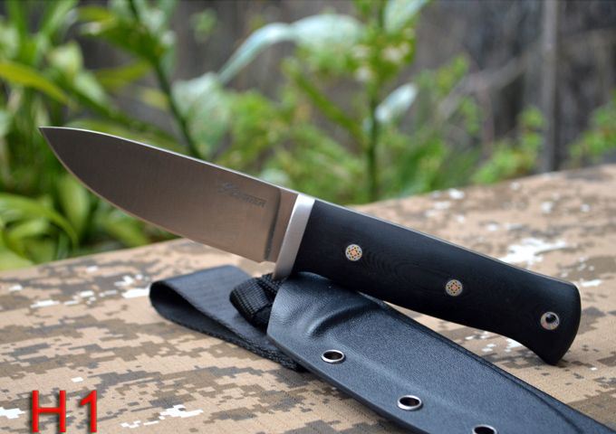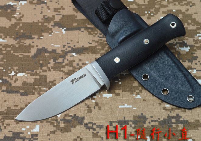 鹰版2017随行H1小直刀 全长:213mm 柄长:115mm 刃长:95mm( 有效刃长) 刃厚:5.0mm 刃宽:31mm(最宽处) 刃材:A2 重量:220g(刀净重,不含鞘) 硬度:60HRC 柄材:A级G10 刀鞘:美国进口Kydex 磨式:平磨(有较好的强度) 表面:钢本砂光 热处理:真空油淬(增加晶体颗粒细腻度,具有最好的韧性) 包装:蛇皮纹纸手工盒