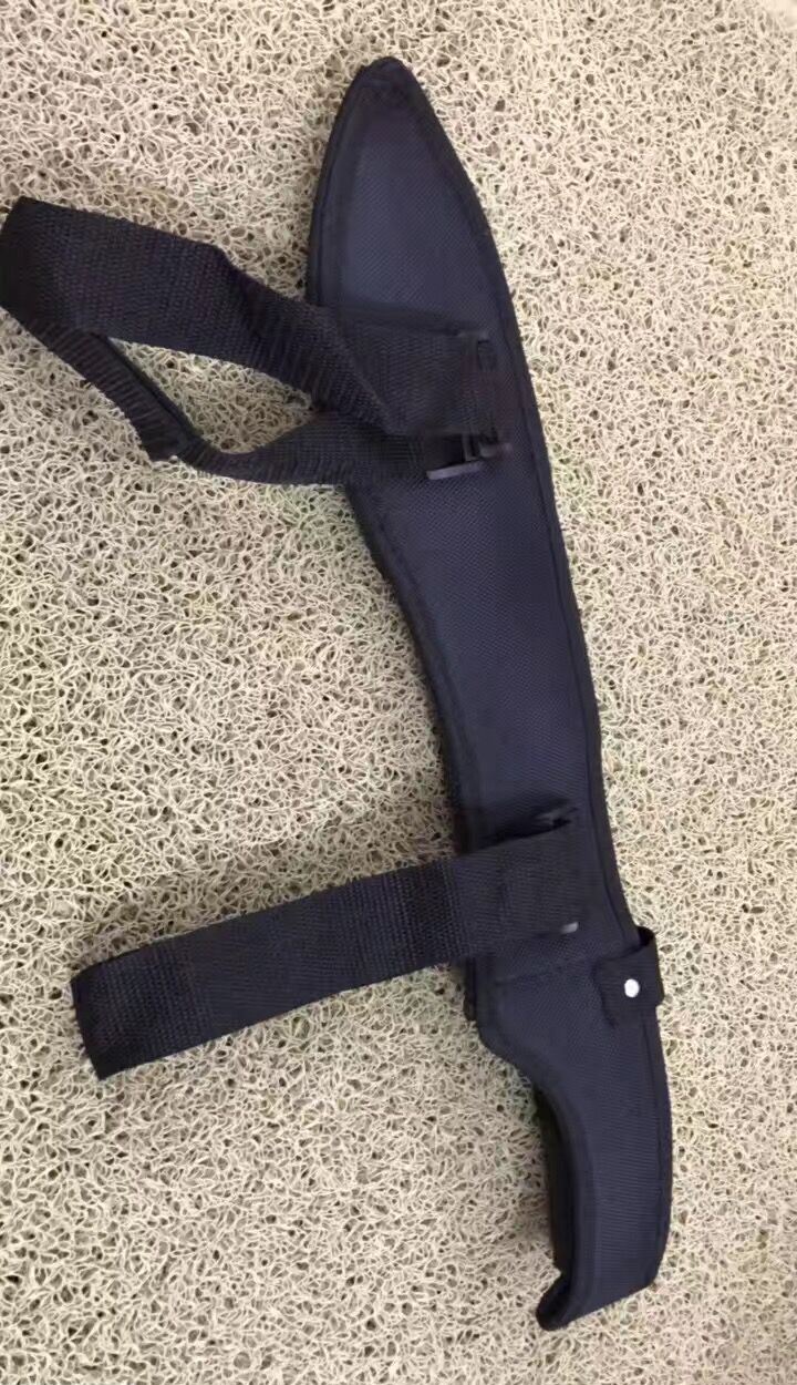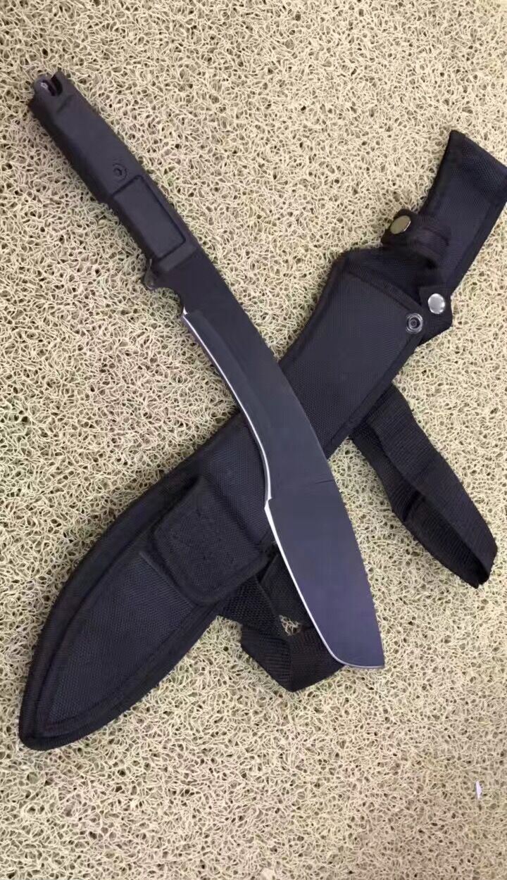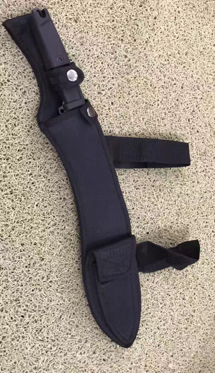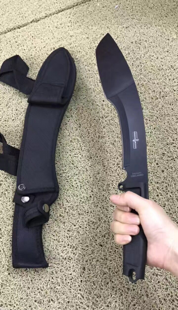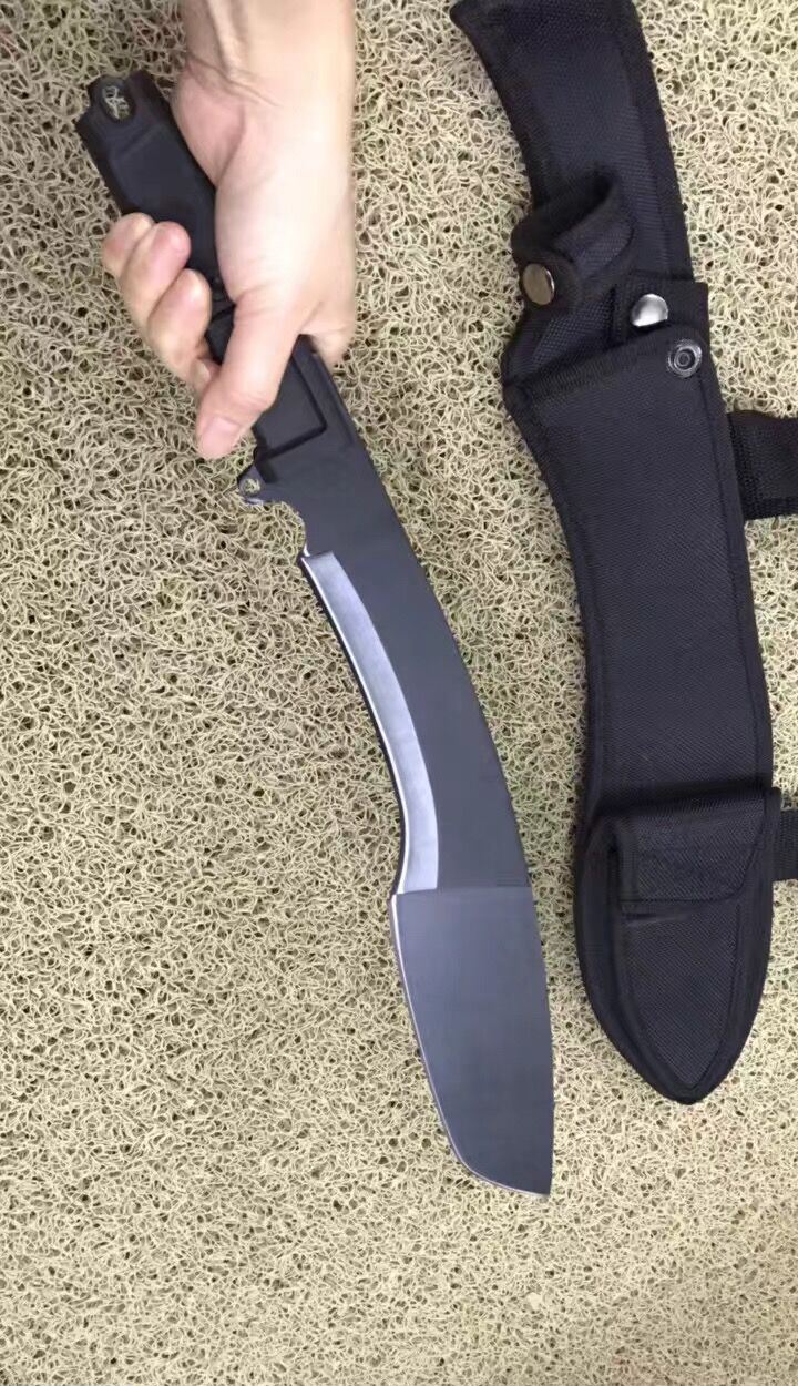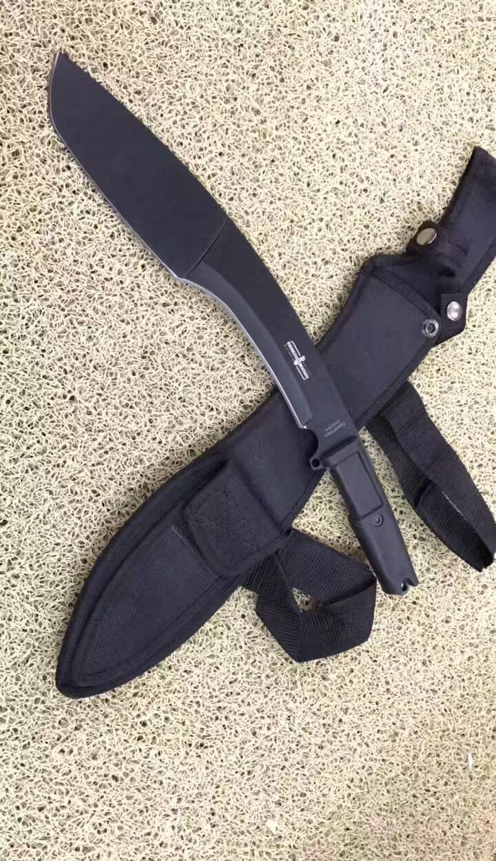极端武力Extrema Ratio KH战术砍刀钛黑版 全 长: 45cm 总刃长: 32cm(第一节刃长:17CM 第一节刃长:15CM) 刃 厚: 6mm 刃 材: 7CR13 硬 度: 58HRC 表 面: 黑钛 柄 材: 橡塑 刀 鞘: 尼龙 重 量: 650克