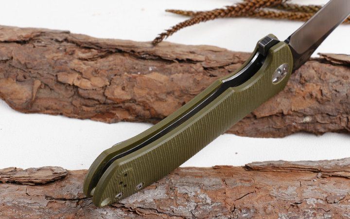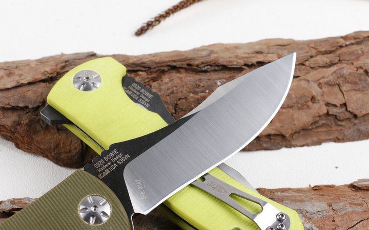 零公差ZT0920快开轴承折刀 全长;23.2cm 刃长:10.2cm 柄长:13cm 刃厚:0.38cm 刃宽:3.1cm 刃材:9CR18MOV 柄材:钢片+防滑G10片 硬度:58HRC 净重:175克(含包装) 表面处理:石洗+沙光 包装:彩盒 锁定:线锁 其它:刀柄分军绿色和荧光色,下单请注明