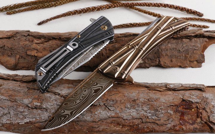 微技术终结者仿大马士革纹折刀