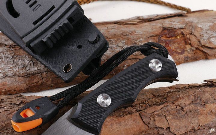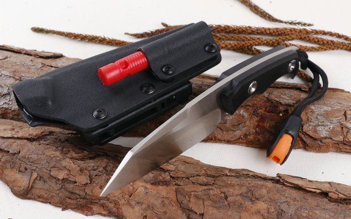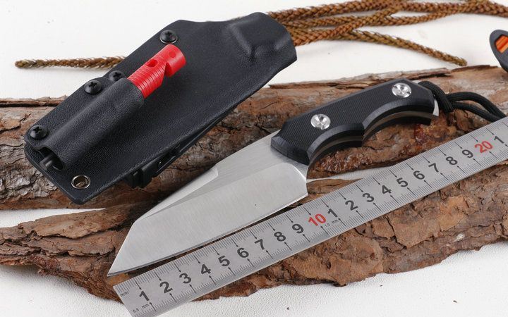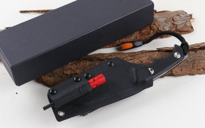 军版求生小直沙光版 全 长: 20.0cm 刀 长: 11.0cm 刃 材: D2 硬 度: 58HRC 表 面: 精细沙光 刃 厚: 4.0mm 柄 长: 9cm 柄 材: 高密度G10 刀 重: 180克 总 量: 395g(含包装物) 刀 套: K鞘 其 它: 黑色礼品盒,送哨子和打火棒