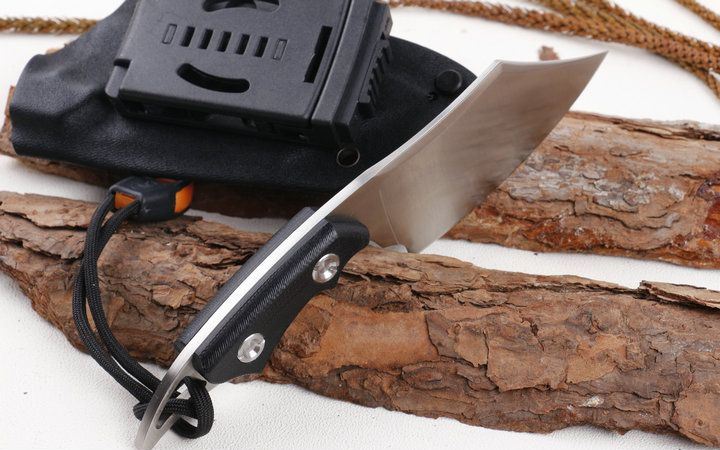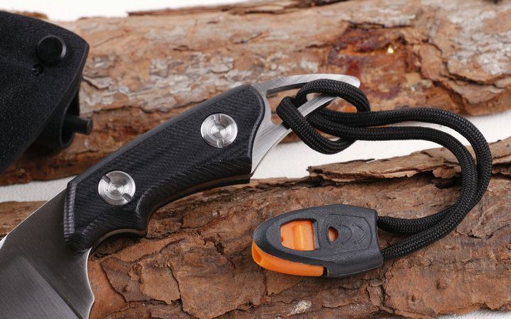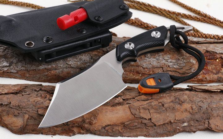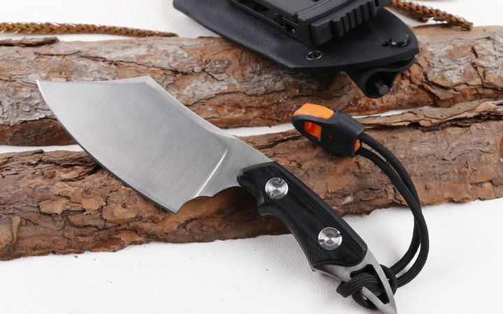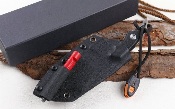刹月直刀 全 长: 20.0cm 刀 长: 11.0cm 刃 材: D2 硬 度: 58HRC 表 面: 精细沙光 刃 厚: 4.0mm 柄 长: 9cm 柄 材: 高密度G10 刀 重: 145克 总 量: 370g(含包装物) 刀 套: K鞘 其 它: 黑色礼品盒,送哨子和打火棒