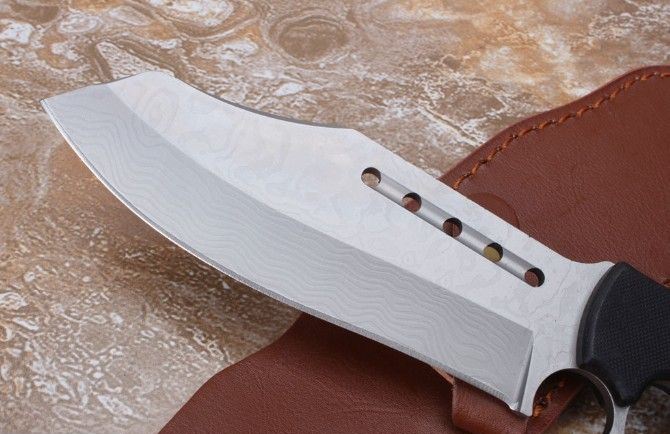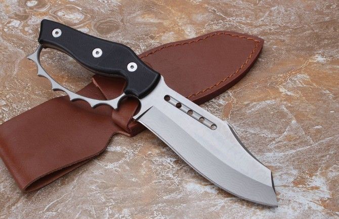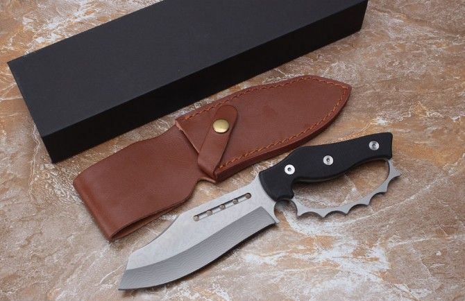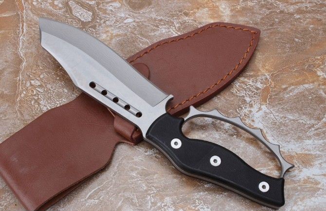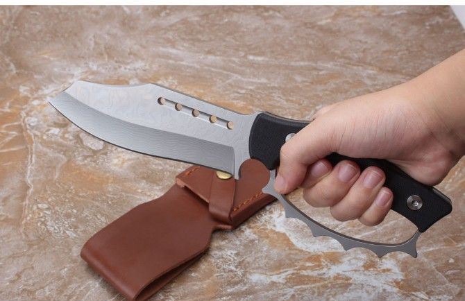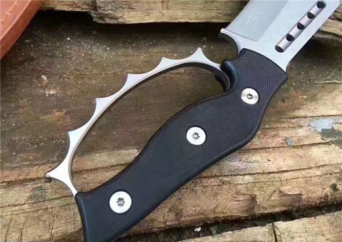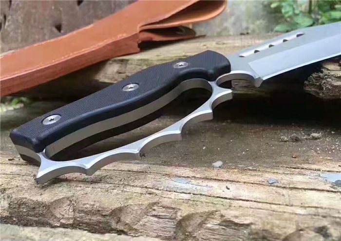 不死鸟屠龙手环刀 全 长:27CM 刃 长:14CM 柄 长:12CM 刀 厚:0.55CM 刃 面:喷砂 毛 重:约400克(含刀鞘) 钢 材:9cr18mov钢 硬 度:59HRC(真空油冷热处理) 柄 材:G10高硬度纤维柄 刀 鞘:皮套