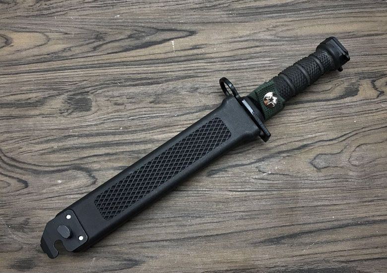 95军刺特制版 全 长:32cm 刃 长:19.8cm 刃 厚:5.9mm 刃 材:7CR13 硬 度:57HRC 重 量:刀,410g+鞘400g 表 面:黑色 柄 材:ABS 刀 鞘:ABS 其 它:锋利