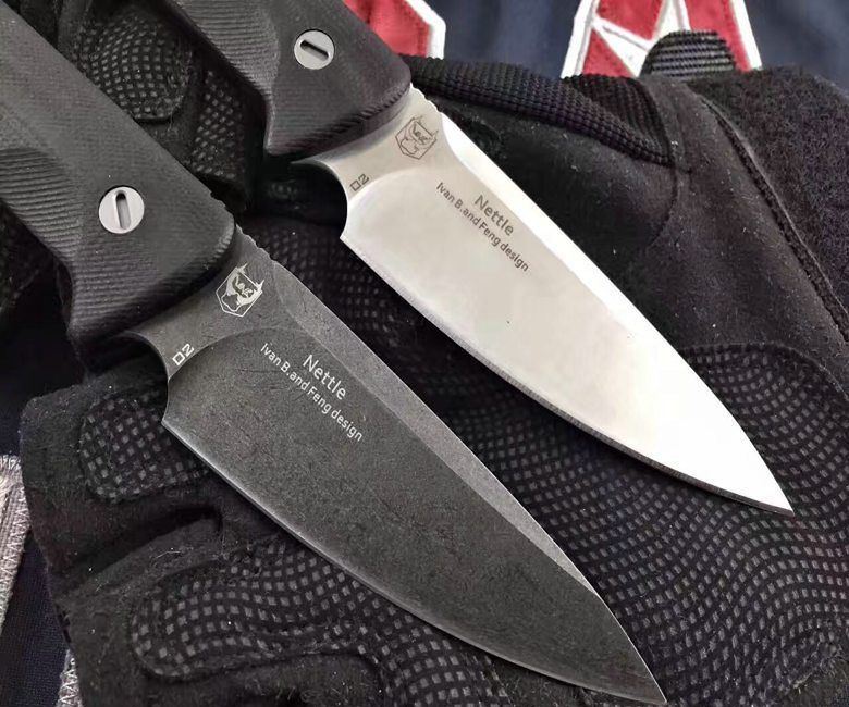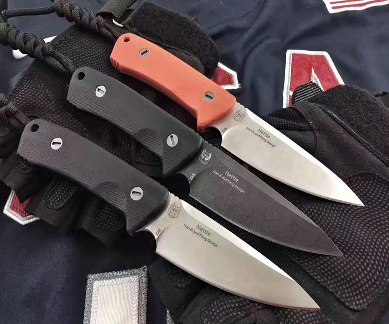 熊爪Nettle战术直刀 全 长:18.5Cm 刃 长:8.4Cm 柄 长:9.6Cm 刃 宽:2.8Cm 刃 厚:2.8mm 表 面: 精美纯手工砂光,幼拉丝和沧桑石洗 类 型: 以锋利度.韧性保持度.砍削最出色,超强立体感刃线 开刃方式:二次开刃 刃 材: D2(100%可测试) 热处理方式:真空淬油深冷热处理 硬 度: 不低于60-61HRC 柄 材: 黑色G10 橙色G10 净 重: 177克(含包装) 包 装: 精美黑纸盒 其 他:配硬纸盒+K鞘 设计者:乌克兰Ivan B