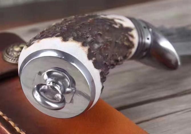 柄材:天然鹿角+黄铜+钢头雕花