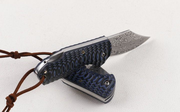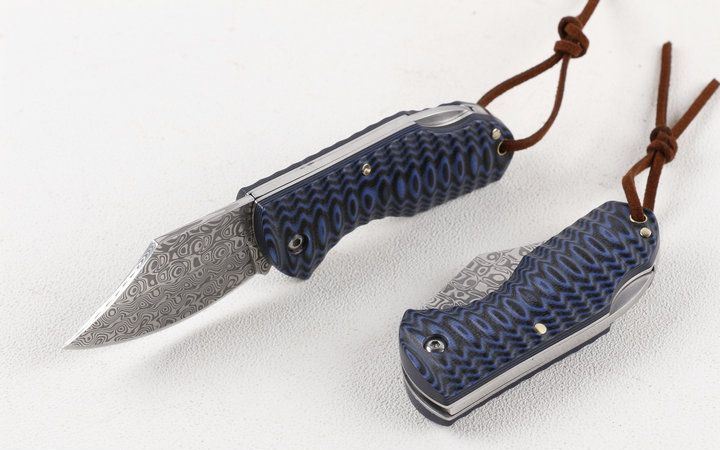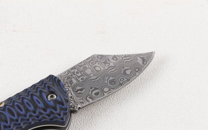 小富豪瑞粉大马士革折刀 全 长:12.8cm 刃 长:5.2cm 柄 长:7.6cm 刃 宽:2.1cm 刃 厚:2.4mm 刃 材:100%进口瑞典粉未大马士革钢 重 量:103g (含包装) 硬 度:58-60HRC 表 面:原有大马士革纹路 柄 材:高密度双色G10 锁 型:线锁,开合顺畅 其 它:高级黑色礼品盒