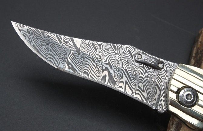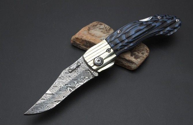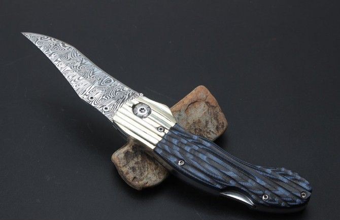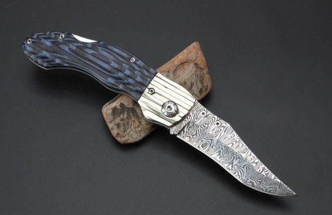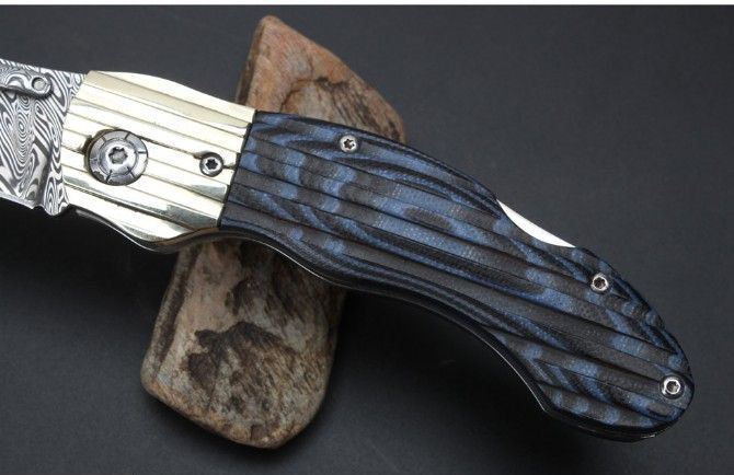 双色龙瑞粉大马士革折刀 全 长:19.8cm 刃 长:8.3cm 柄 长:11.5cm 刃 宽:2.3cm 刃 厚:2.4mm 刃 材:100%进口瑞典粉未大马士革钢 重 量:205g (含包装) 硬 度:58-60HRC 表 面:原有大马士革玫瑰纹路 柄 材:纯铜头+高密度双色G10 锁 型:线锁,内置轴承,开合顺畅 其 它:高级真皮套