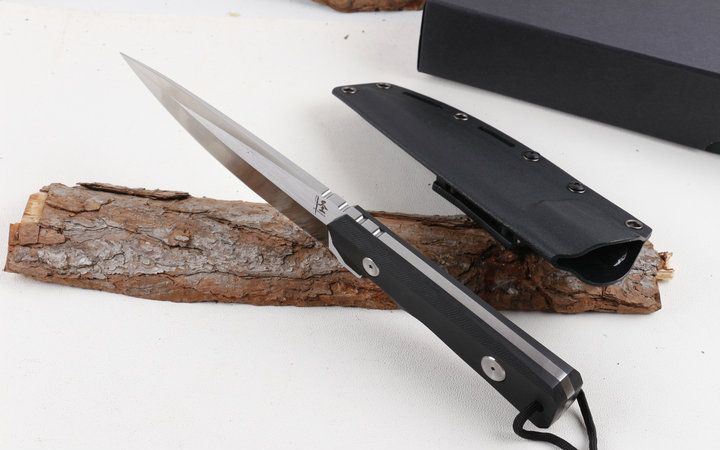 刀圣3号猛士直刀 全 长:30.8Cm 刃 长:16.4Cm 柄 长:14.4Cm 刃 宽:3.8Cm 刃 厚:5.8mm 刃 材:9CR18Mov 重 量:813克毛重 硬 度:60HRC 表 面:沙光 柄 材:G10柄 锁 型:定锁 其 他:配硬纸盒+K鞘