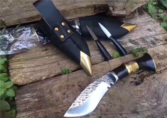 配送:牛皮刀鞘一个,辅刀两把