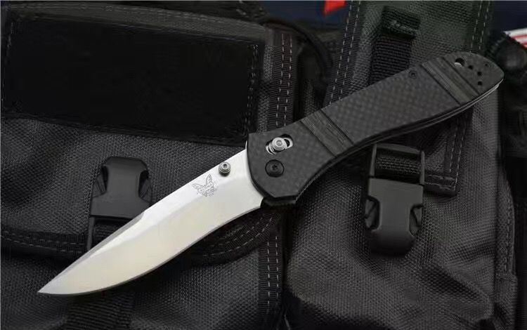 代工定制版蝴蝶710折刀 刃材:GB-D2(国标D2) 柄材:710柄材是国产纯碳纤 全长:22.35厘米 刃长:9.91厘米 闭合:12.45厘米 刃厚:0.31厘米 锁型:轴锁 硬度:60-61HRC 重量:135克