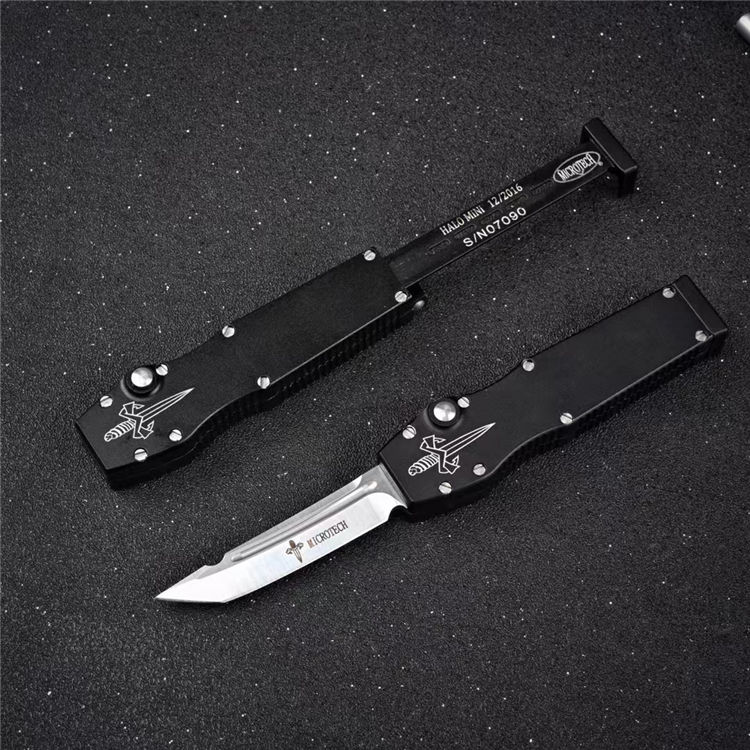 微技术halomini光环经典款式tanto武士刀头刃 刃材质:D2 全长:12cm 刃长:5 刃厚:0.25cm 刃宽:1cm 闭合长度:7cm 柄材:T6型航空铝 附件:纸盒+维护工具+kydex挂链刀鞘 重量:30克