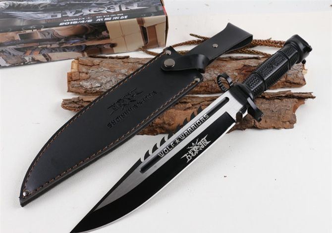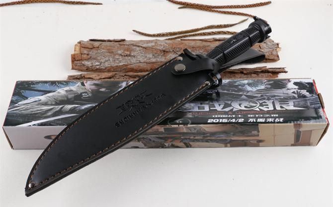 战狼突击队直刀 全长:38.2CM 刃长:25.8CM 柄长:12.4CM 身最大宽度:4.5CM 刀厚:0.58CM 刃面:拉丝+发黑 刀重:452克 毛重:590克(含k鞘) 钢材:7CR15 硬度:57CHR 刀柄:绝缘强化塑胶, 刀套:仿真刀套 其它:彩盒包装 适用户外,开山,求生等功能