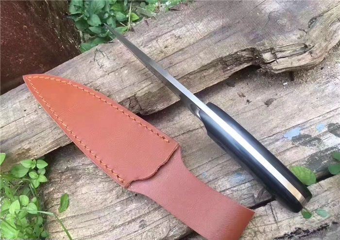 小号黑猫丸直刀 材 料:7cr17mov 长 度:22.5 厚 度: 0.6cm 刃 长:16.5cm 柄 长:11.5cm 刃 宽:3cm 最宽处:3.5cm 硬 度:58-HRC 净 重:200 其 他:配皮套 毛 重:300克 净 重:200克 柄 材:檀木