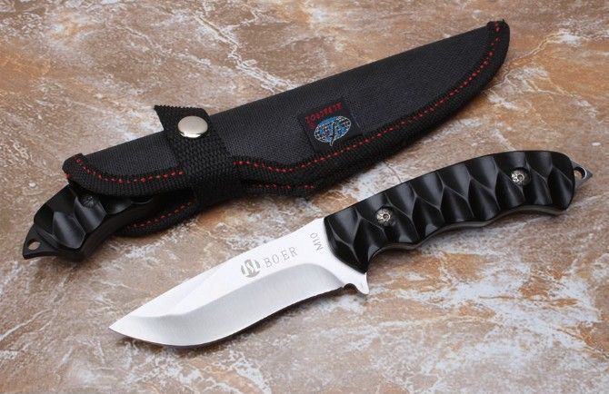 博尔特M10小猎刀 全 长:210mm 刃 长:91mm 柄 长:116mm 刃 宽:29mm 刃 厚:3.8mm 刃 材:5Cr13Mov 重 量:213g(含包装) 硬 度:56HRC 表 面:黑钛+沙光 柄 材:全钢 锁 型:定锁 其 他:配黑色牛津套