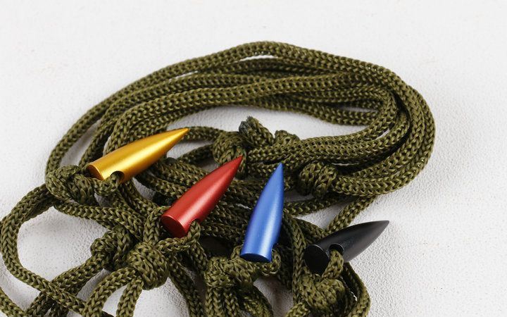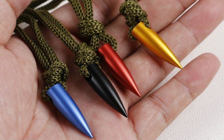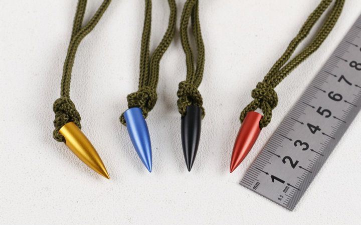 战狼2铝合金项链子弹四色 长度:3.1cm 厚度:8.7mm 重量:36g 材质:铝合金 伞绳长度:90cm 包装:铁盒