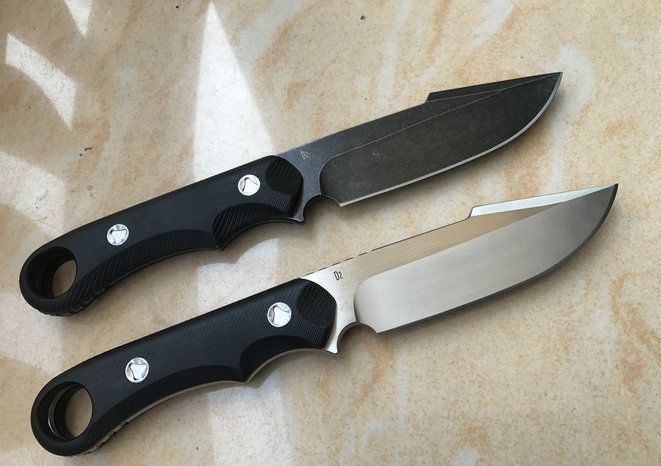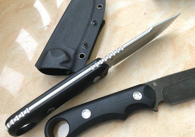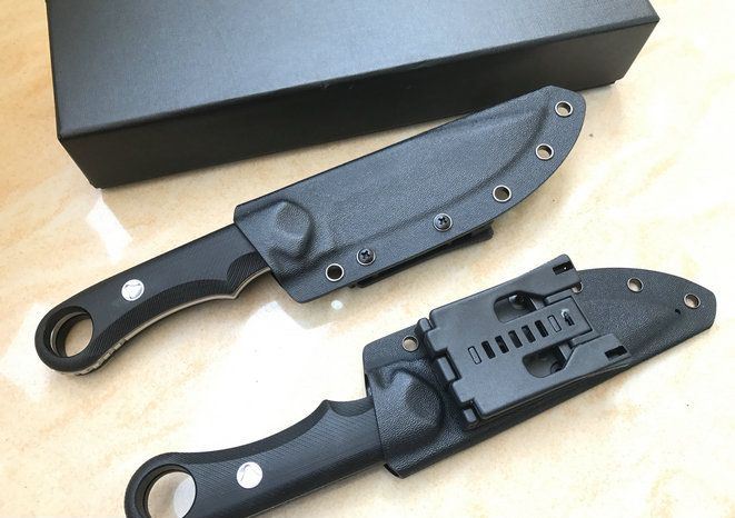 挺进者剑鱼小直D2钢(砂光、黑色石洗) 全长:26mm 柄长:13.2mm 刃长:12.8mm 刃厚:5mm 硬度:60-61HRC{真空热处理) 柄材:G10 刀鞘:进口Kydex鞘 表面:砂光和沧桑石洗 刃材:D2 刀重:约320克 包装:黑色礼品盒