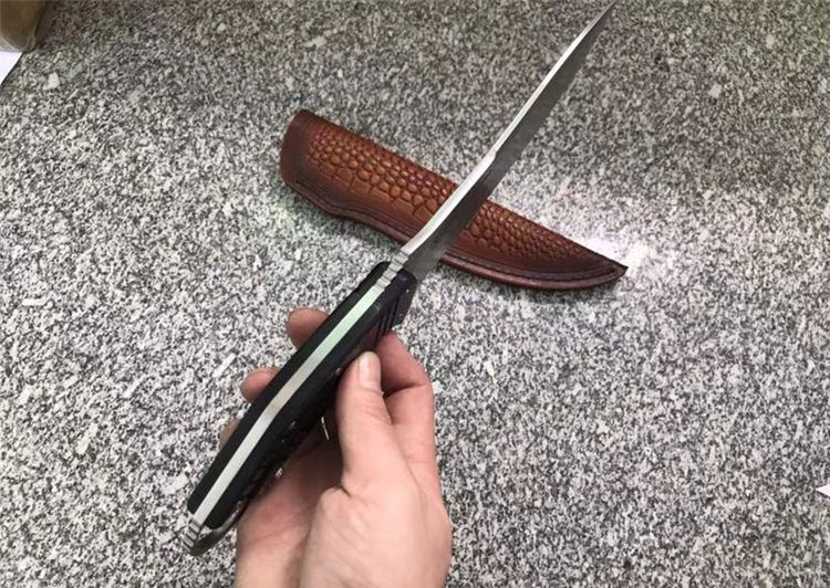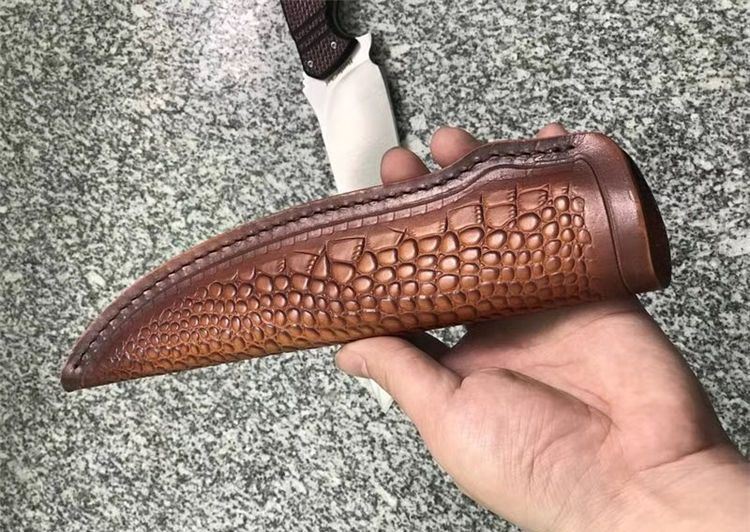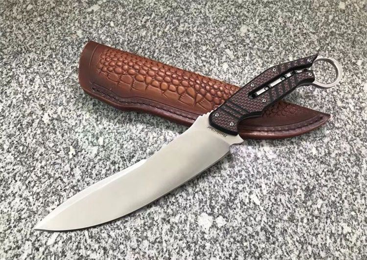 FOX狐狸Olamic Cutlery永恒刃具狩猎者直刀 刃刃材质:D2 刃具全长:30.4 CM 刃长:17.7 CM 刃厚:0.5 CM 刃宽:3.8 CM 硬度:58-60 HRC 柄材:碳纤 附件:植鞣头层雕花皮套 重量:288.5克