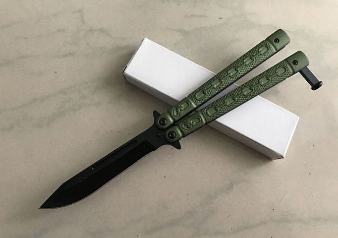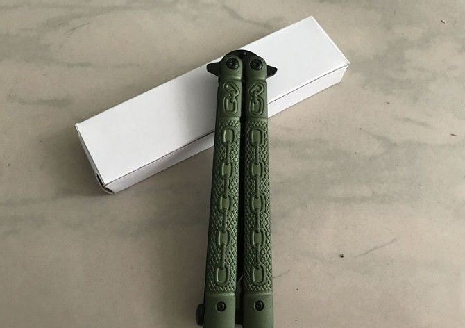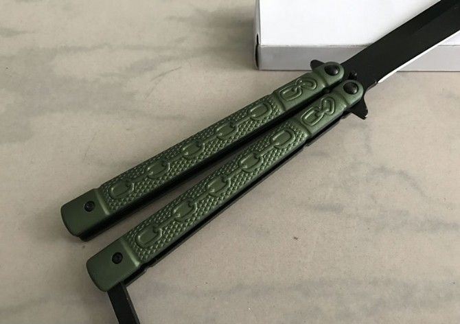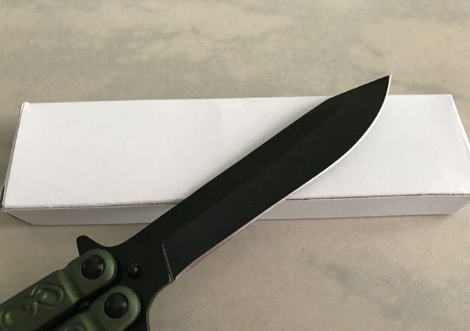 绿链甩刀 全 长:23cm 刃 长:9.5cm 柄 长:13cm 刃 宽:2cm(最宽处) 刃 厚:2.7mm 刃 材:420 硬 度:52HRC 刀 柄:钢柄 表 面:发黑 重 量:140.0克