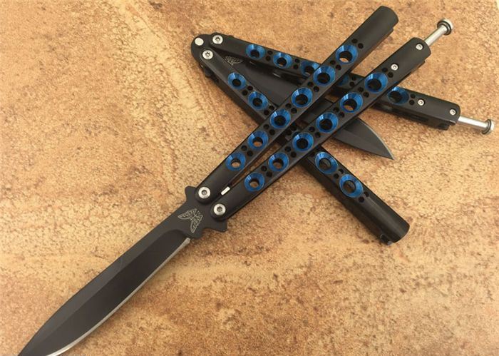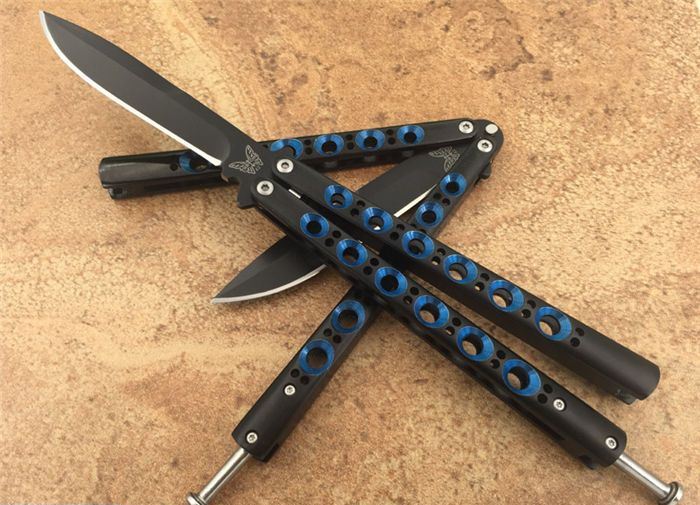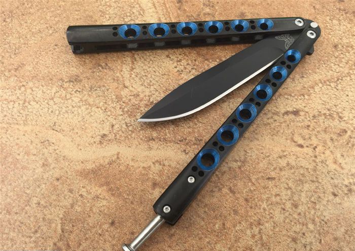 TheoneBM42蓝翠眼蝴蝶甩刀, 蝴蝶经典款式之一,一体柄型,刀刃选用高级440C钢,螺丝扣锁都经过严格调配,刃口锋利,Theone特制款式,秉承The one优良血统
