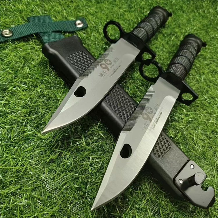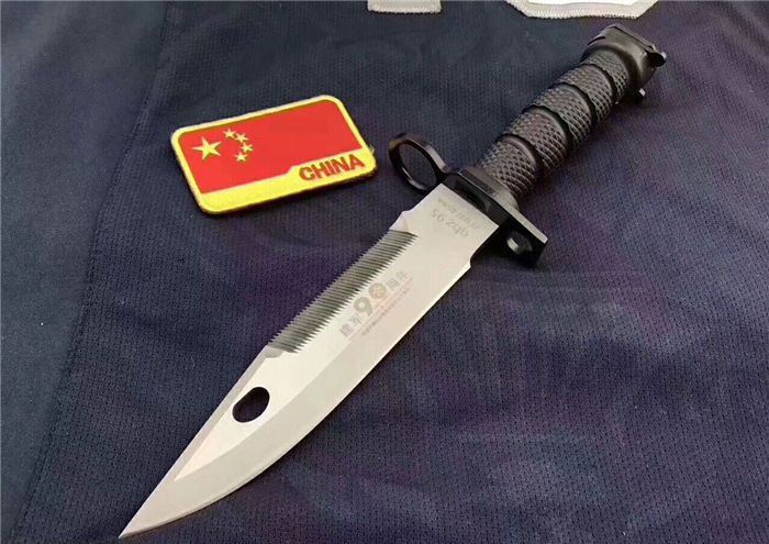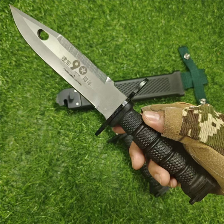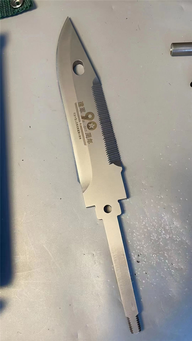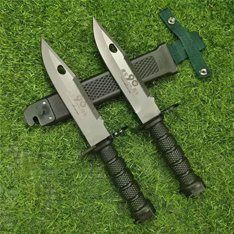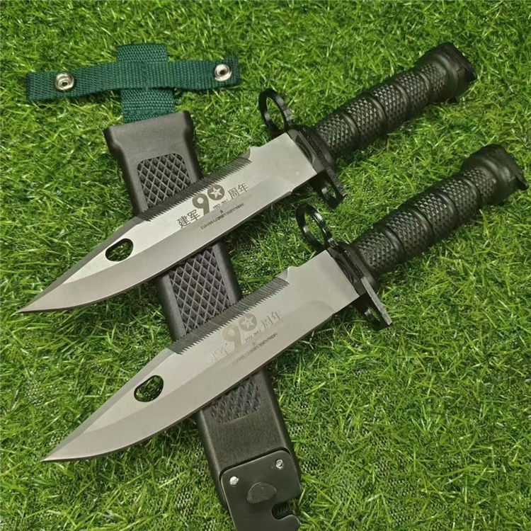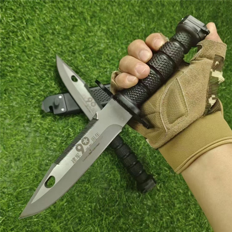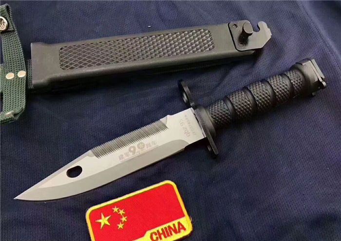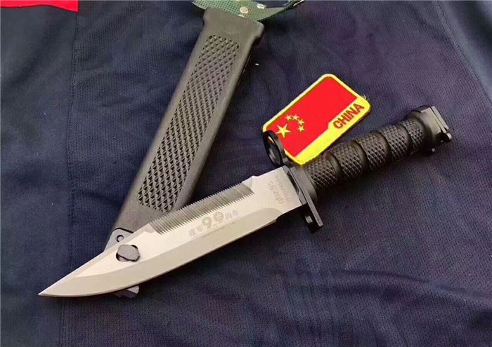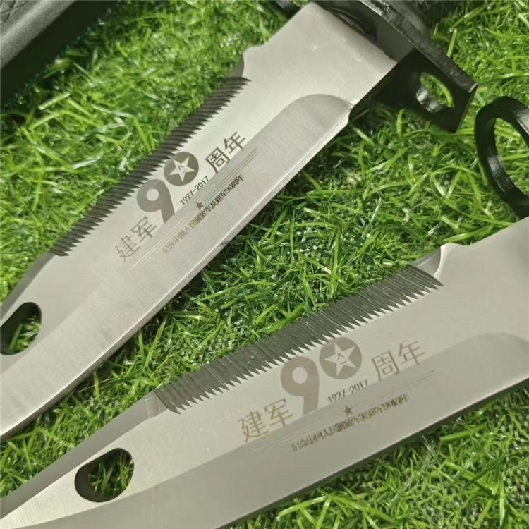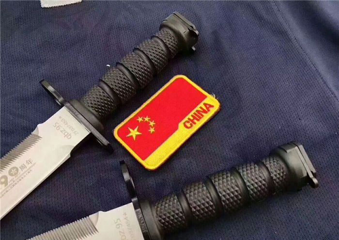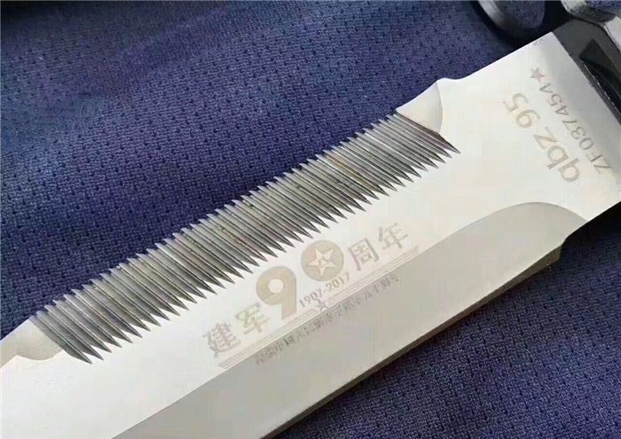 新唛90周年95纪念刀 全 长:32cm 刃 长:19.8cm 刃 厚:5.9mm 刃 材:7CR13 硬 度:57HRC 重 量:刀410g+鞘400g 表 面:黑色 柄 材:ABS 刀 鞘:ABS