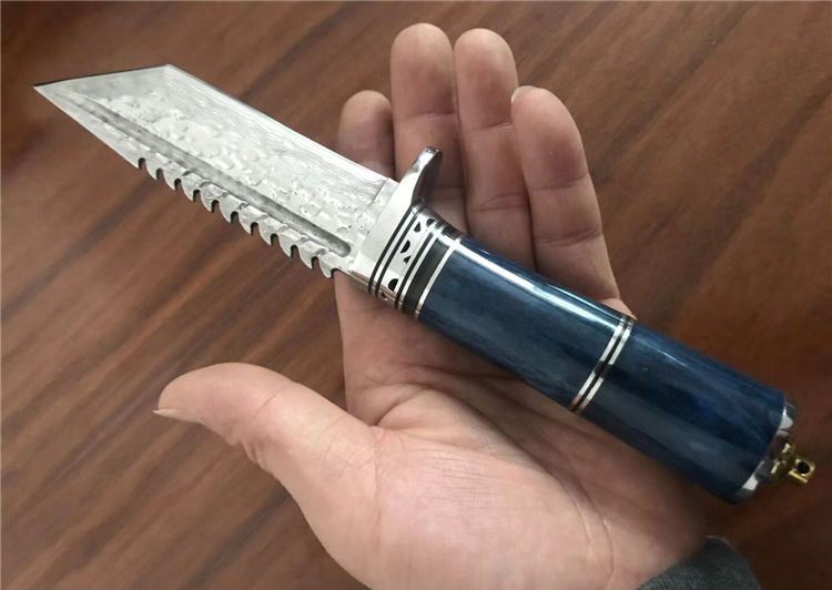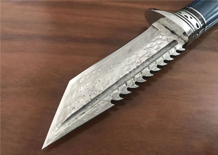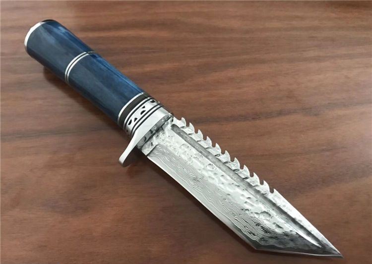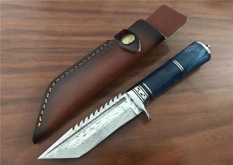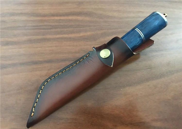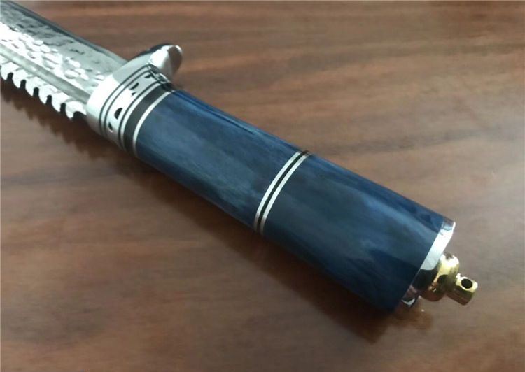 战狼2大马士革版直刀 全长:245mm 刃长:115mm 柄长:130mm 刃宽:33mm 厚度:4mm 重量:0.5kg 钢材:进口大马士革 刀套:手工真皮套