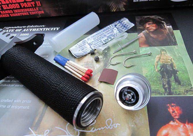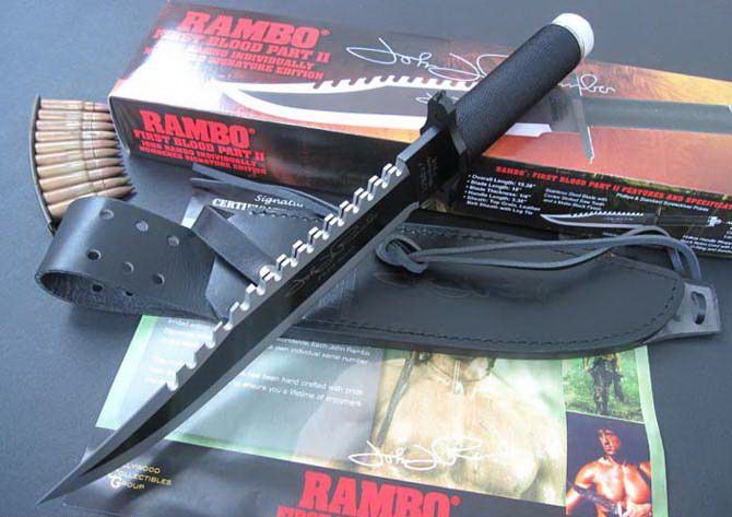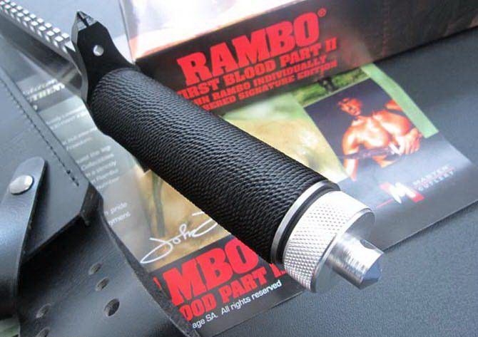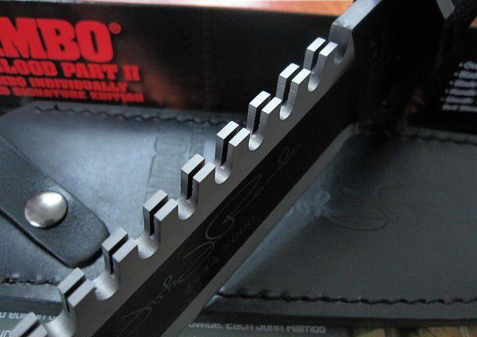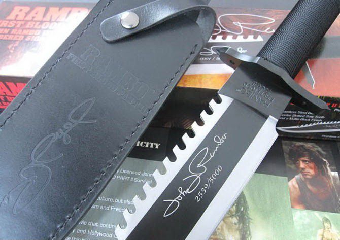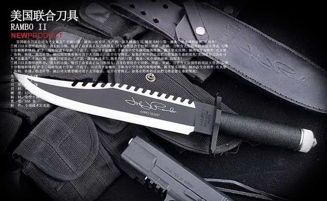兰博II号求生刀RAMBO手签纪念版 全长:39.0cm 刀刃:25.5cm 刃厚:0.6cm 材料:420J2不锈钢 硬度:57HRC 柄长:13.5cm 净重:500.0克 毛重:900.0克(包含包装盒和皮套) 铝抛光钻石纹尾盖,内装有指南针 随附高档真皮刀套