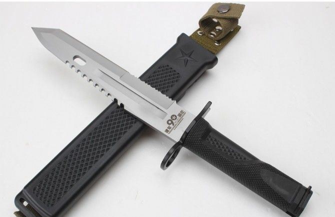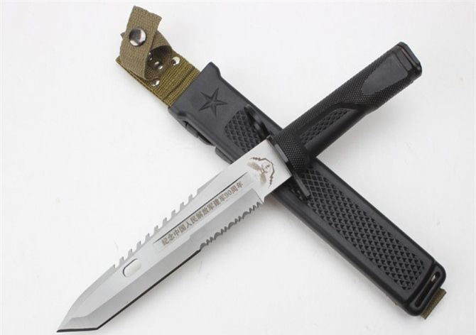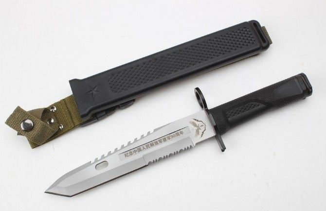 使命复仇者90周年纪念刀 全 长:33.8CM 刃 长:20.8CM 柄 长:12.8CM 刀 身最大宽度:3.6.CM 刀 厚:0.53CM 刃 面:喷砂 毛 重: 564克(含k鞘) 钢 材:7CR15 钢硬度:57 刀柄:绝缘强化胶 配塑胶鞘 彩盒