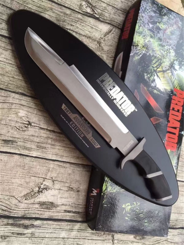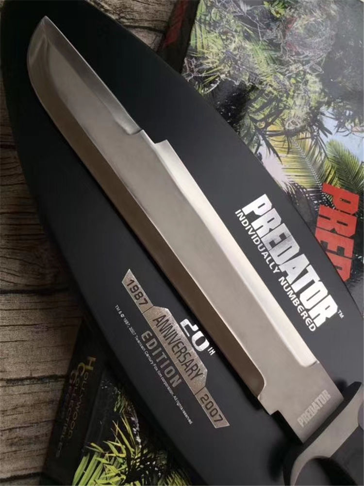 兰博5号手签珍藏版 全 长:51cm 刃 长:37cm 刃 厚:5.5mm 刃 材:440C 柄 材:黑檀 硬 度:58Hrc 表 面:喷砂 刀 套:无 净 重:1088g