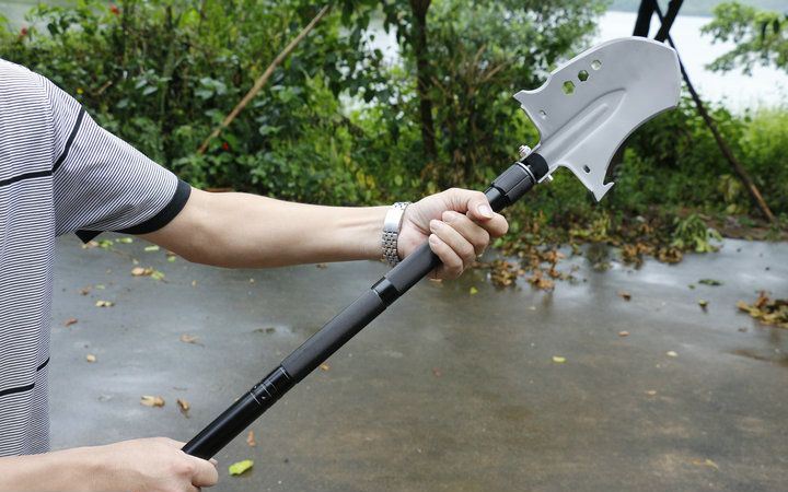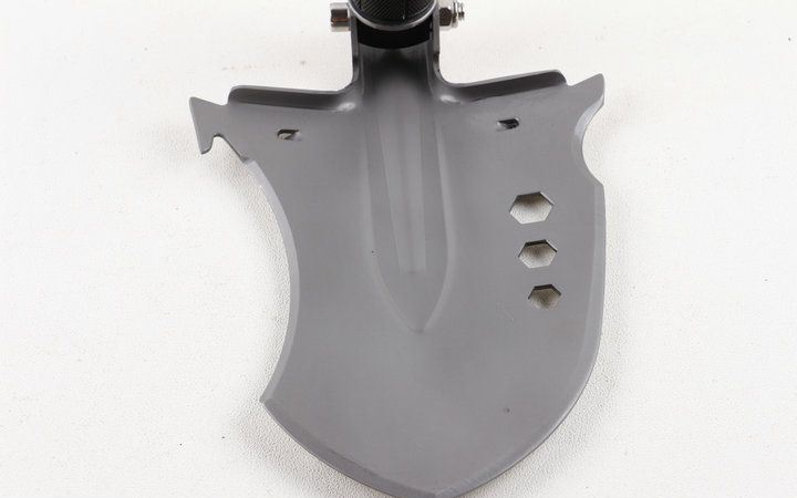 功能:有铲,锄 ,锯,刀,割,打火棒,哨子,开瓶器,撞玻器,丝批等功能,在生产工艺上采用上好淬火高碳钢,增加强度,抗磨损,抗腐蚀,耐高温等优势.有把铲在手,登山,外出永不怕。