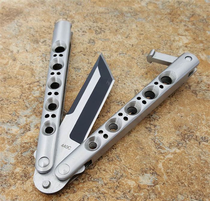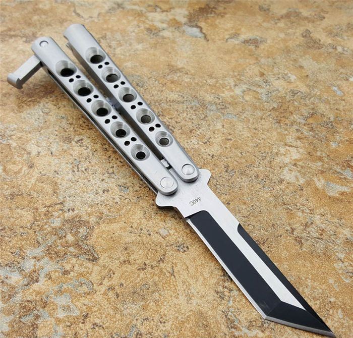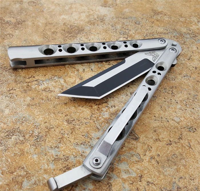 The one经典蝴蝶甩刀BM31一体柄Tanto 全长:18CM 刃长:7.5CM 刃厚:0.3CM 刃材料:440C 刃硬度:58 柄材料:不锈钢压铸一体 柄硬度:40 重量:105克 刀鞘:刺绣高级尼龙套,可横竖挂皮带 背夹:一体铆刀柄 包装:礼盒