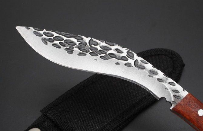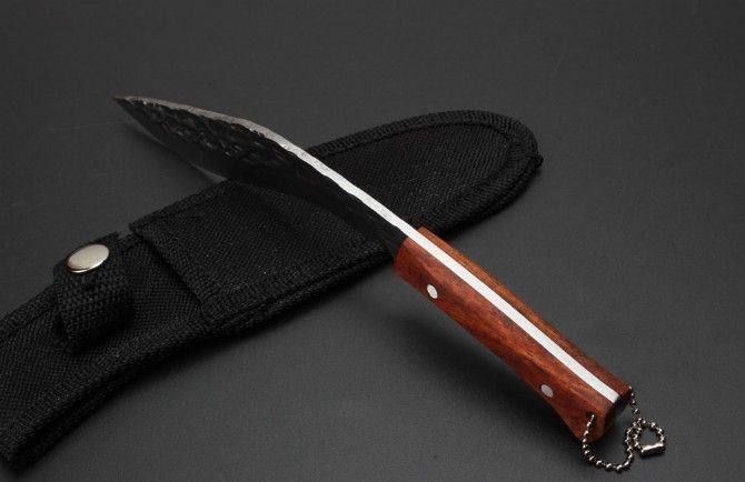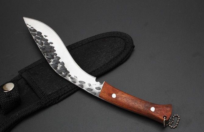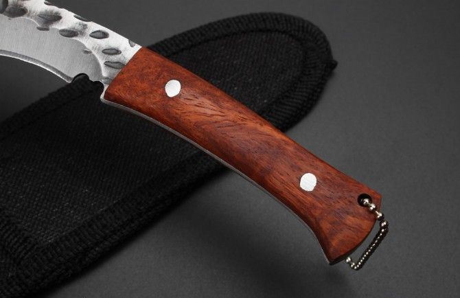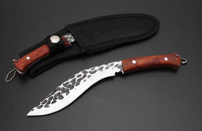 廓尔喀天之骄子锻打小狗腿刀 全 长:19mm 刃 长:12.6mm 刃 宽:2.2mm 刃 厚:0.25mm 刃 材:优质3铬钢 重 量:81g(含包装) 硬 度:56HRC 以上 表 面:锻打刃口沙光 柄 材:酸枝木 其 他:配牛津套