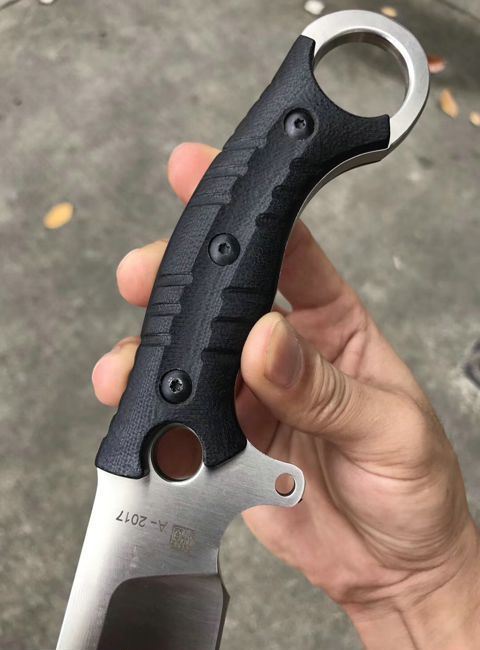 柄材:黑色G10,表面处理,灰黑石洗与砂光效果