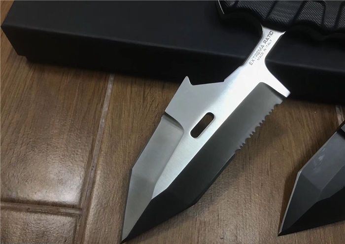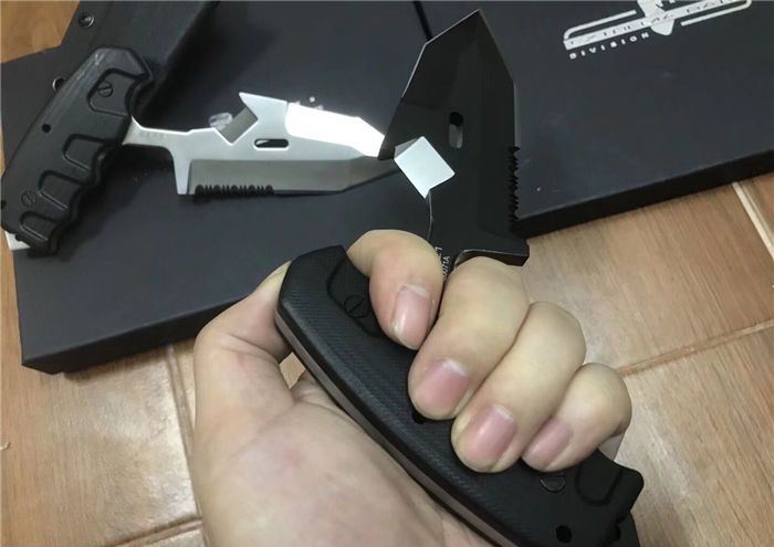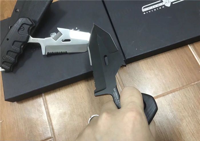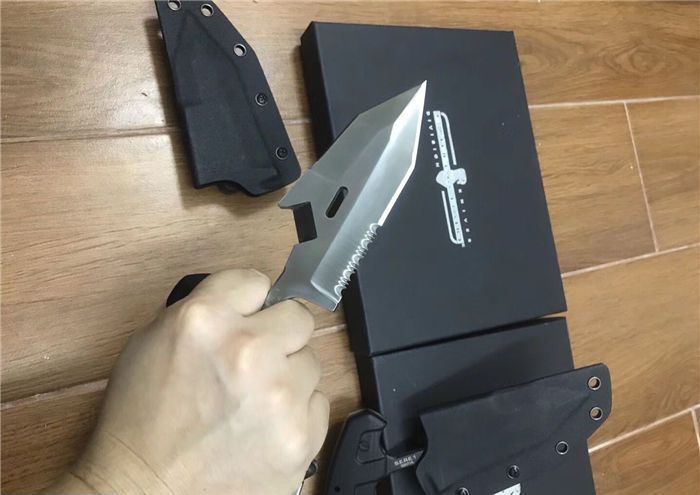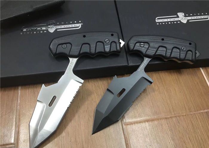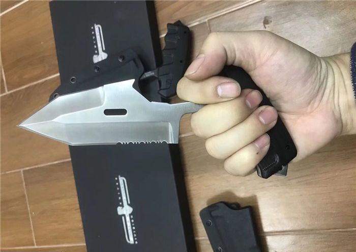 意大利极武多用途手刺 全 长:210mm 刃 长:120mm 刃 材:D2 硬 度: 60HRC 表 面:镀钛和砂光 刃 厚: 6mm 柄 长:90mm 柄 材:G10 重 量:300g 刀 套: K鞘