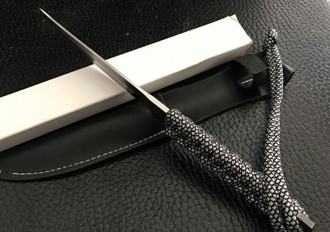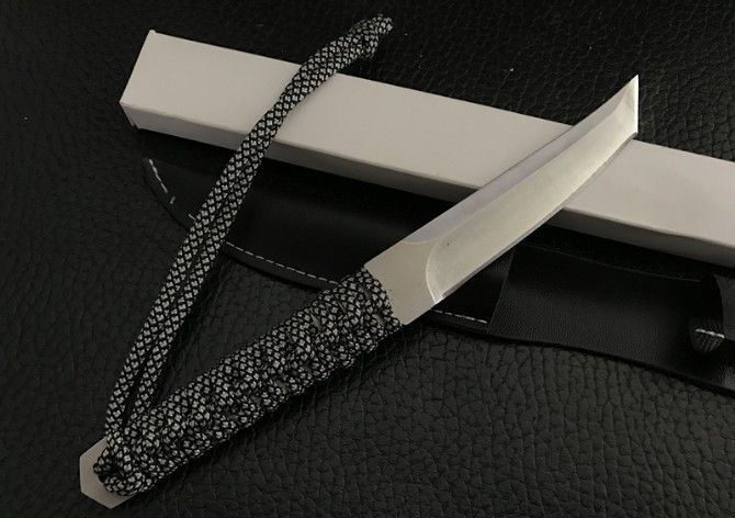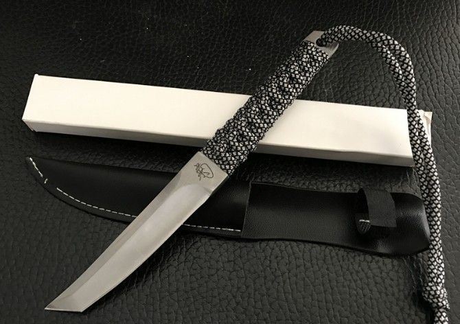 迷你菊字小武士 全 长:21cm 刃 长:9cm 刃 宽:1.9cm(最宽处) 刃 厚:2.2mm 柄 长:10cm 表 面: 钢本色 刃 材: 钢 硬 度: 55HRC 柄 材: 绑腿 重 量:105克(含包装) 刀 鞘:皮