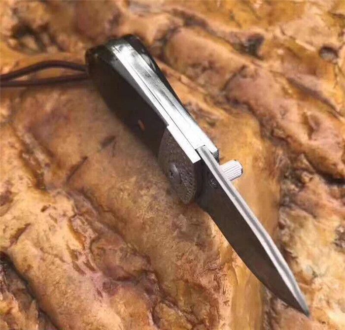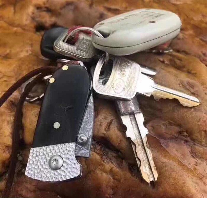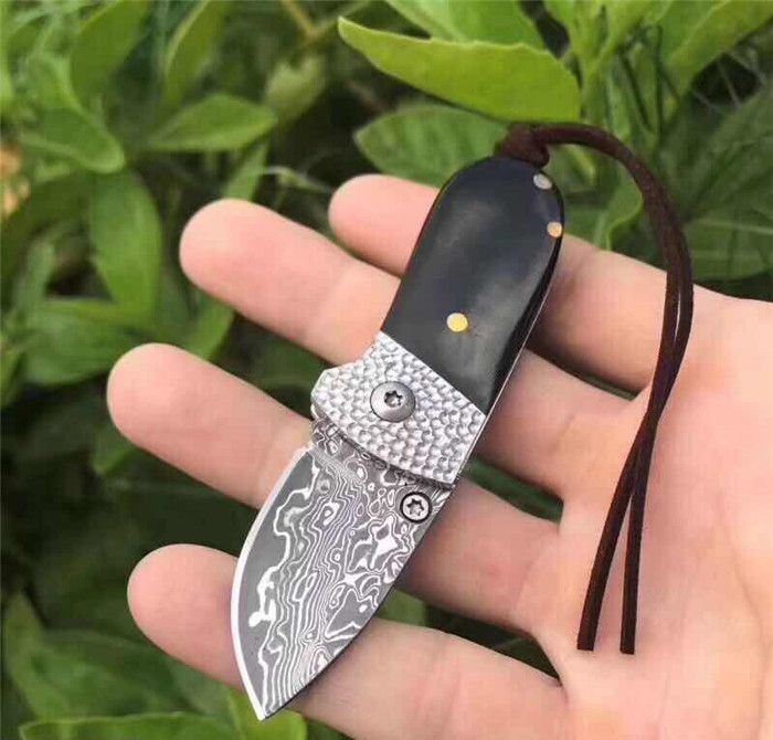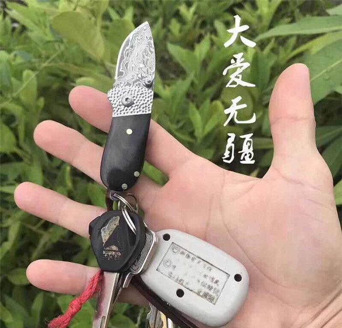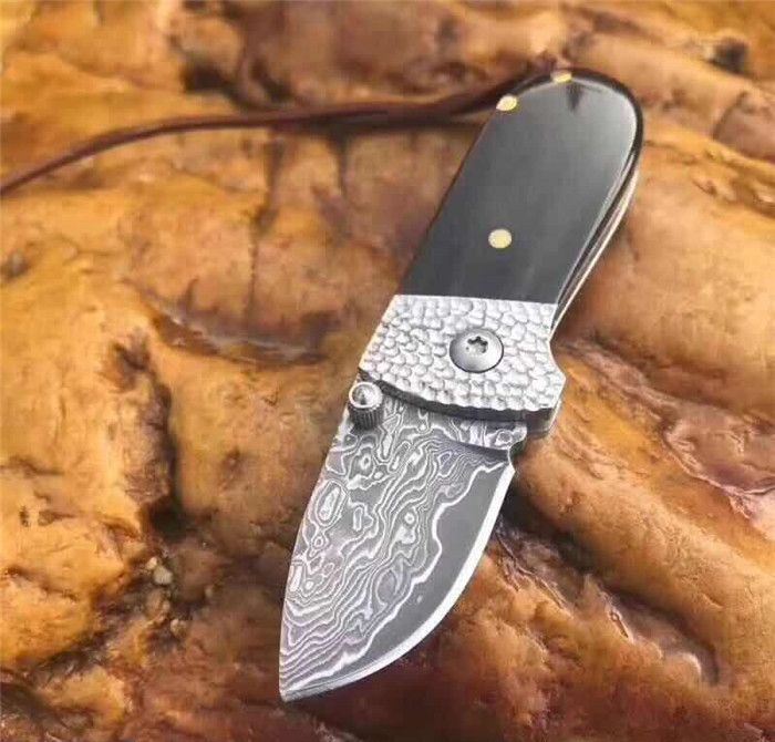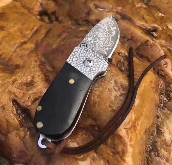 小黑猪大马士革折刀 全长:9.3cm 刃长:3.5cm 柄长:5.8cm 刃厚:2.5mm 刃宽:2.0cm 刃材:进口大马士革钢 硬度:58-60HRC 重量:约75克(含包装) 表面:锻打吉祥如意花纹原色 柄材:黑牛角+不锈钢+黄铜 标配:高级礼品盒+标配绒布袋+可选配手工皮套
