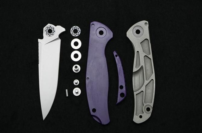 手柄材质:G10 + TC4钛,数控切割,成型工艺,减轻重量。