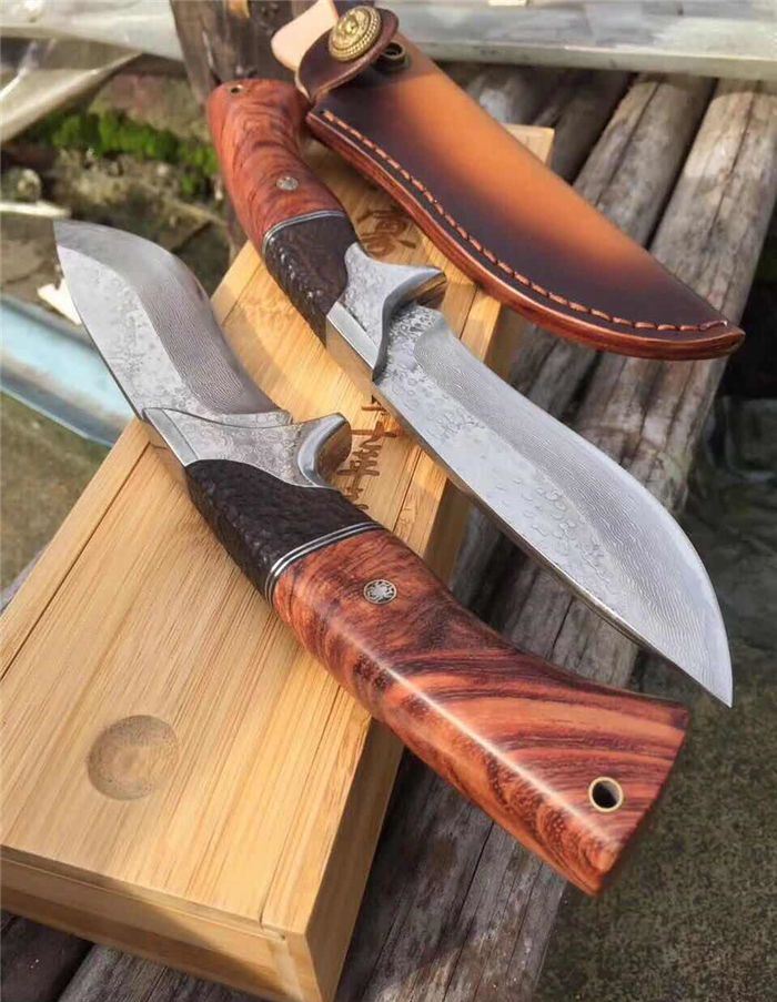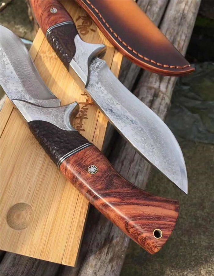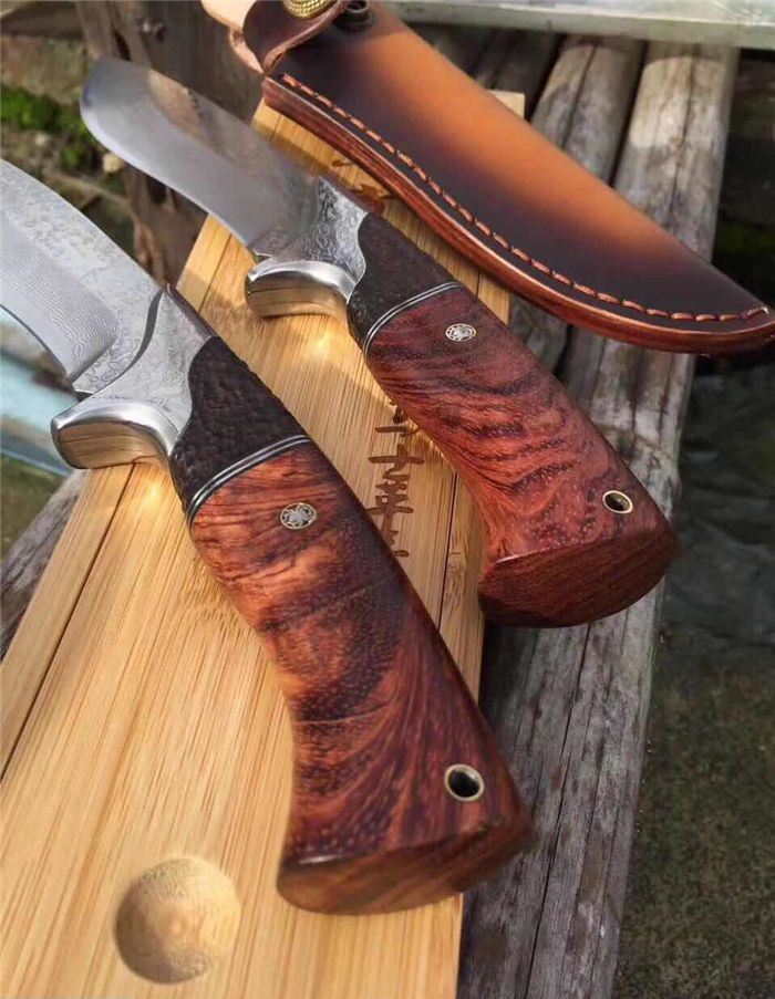 手柄材料做工:大马士革钢档手+黑檀木雕刻微粒+名贵巴瘤木