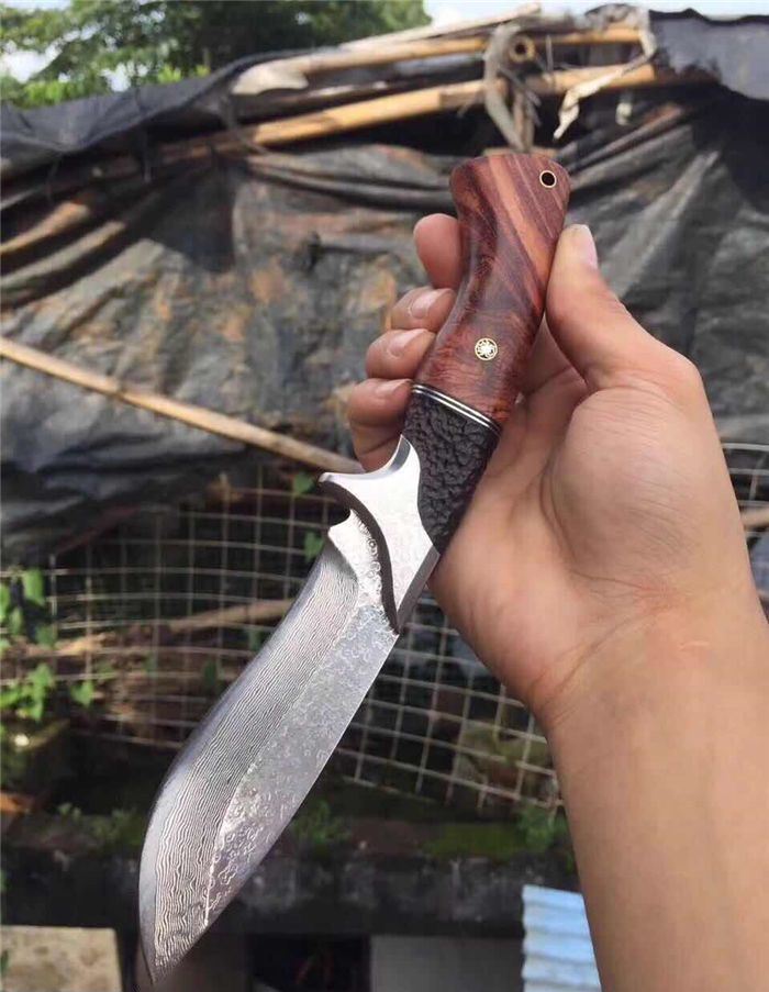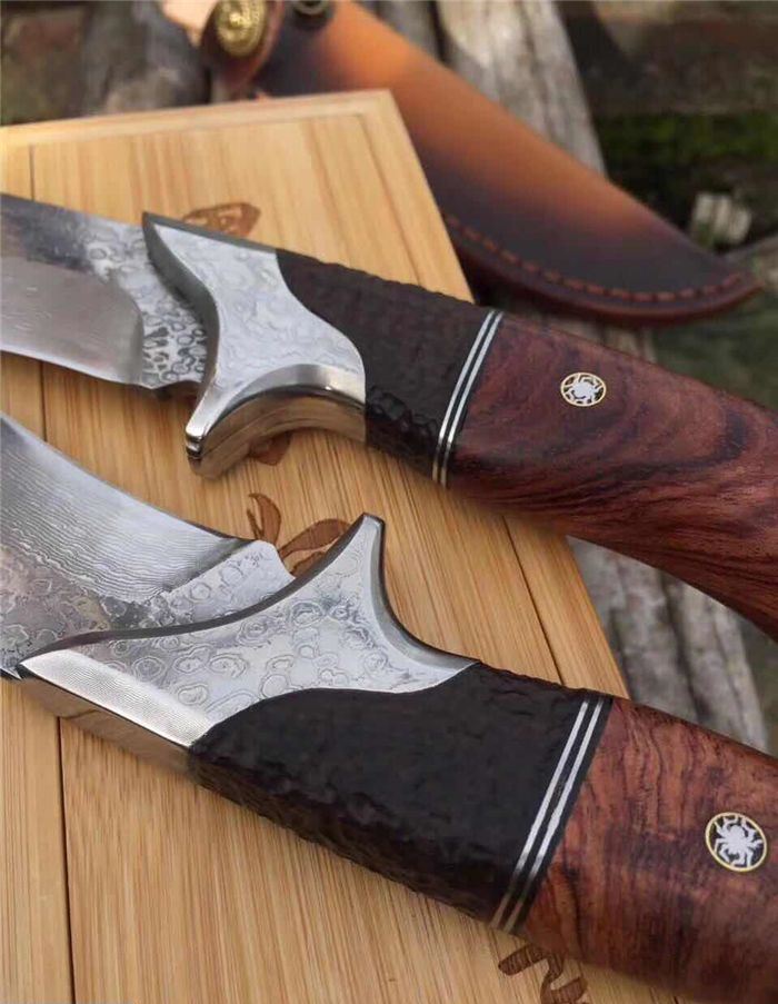 黑寡妇大马士革直刀 全长:24.5cm 刀刃长:13cm 手柄长度:14cm 刀刃钢材:大马士革钢(深冷处理) 刃厚度:4mm 硬度:60HRC 手柄材料做工:大马士革钢档手+黑檀木雕刻微粒+名贵巴瘤木