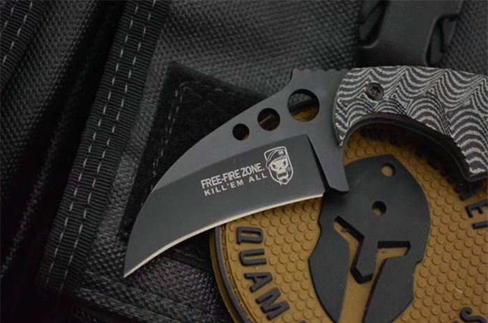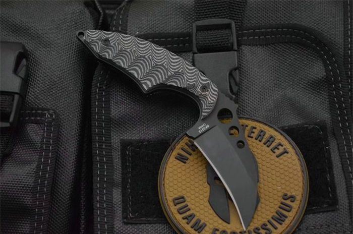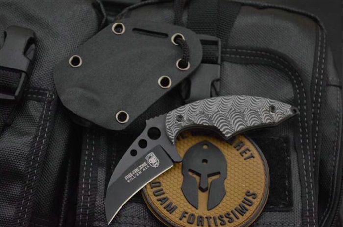 自由者装备二号颈刀 全长:14CM 刃长:5.3CM 刃厚:0.3CM 刃宽:2.8CM 刃材:8铬17 柄材:双色G10 硬度:58HRC 刀重:130克(含刀鞘包装)