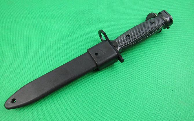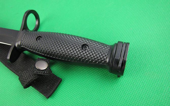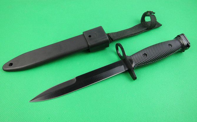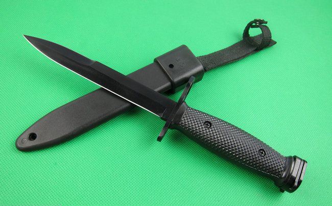 美国M10枪刺 全 长:30cm 刃 长:16.5cm(无开锋) 柄 长:13cm 刃 宽:22cm 刃 厚:5mm 刃 材:5Cr13Mov 重 量:400g(含包装) 硬 度:56HRC 表 面:氧化黑 柄 材:ABS 锁 型:定锁 其 他:尼龙绳+ABS鞘配黄色纸盒