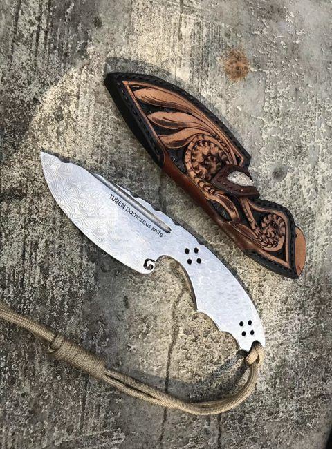 祥云大马士革直刀雕花皮纯
