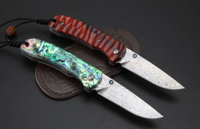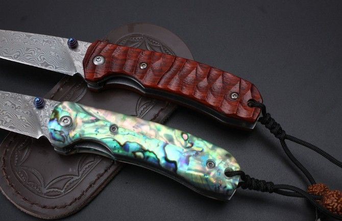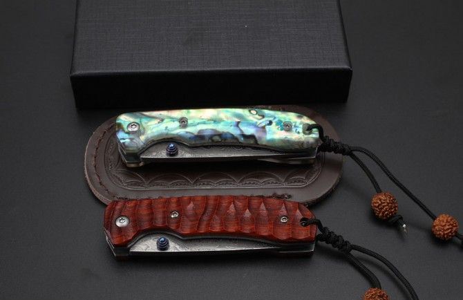 浪人大马士革折刀 全长:172mm 刃长:70mm 柄长:100mm 刃宽:21mm 刃厚:2.4mm 刃材:大马士革钢 重量:125g含包装 硬度:59HRC 表面:大马士革原纹 柄材:彩贝柄,黄檀木 锁型:线锁 其他:配高档礼品盒