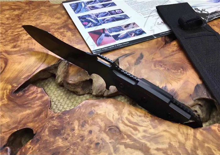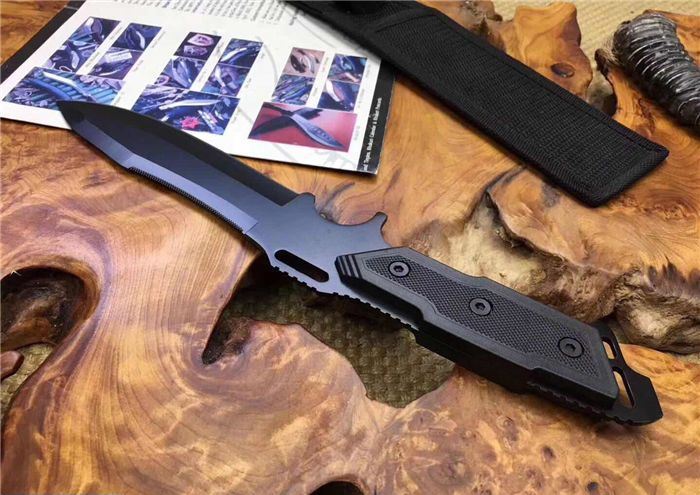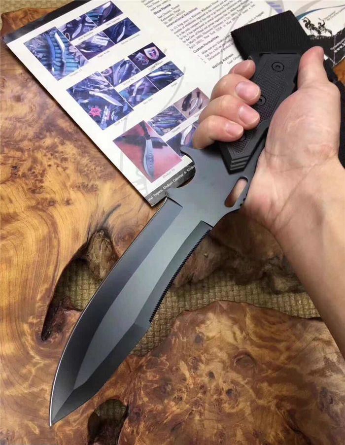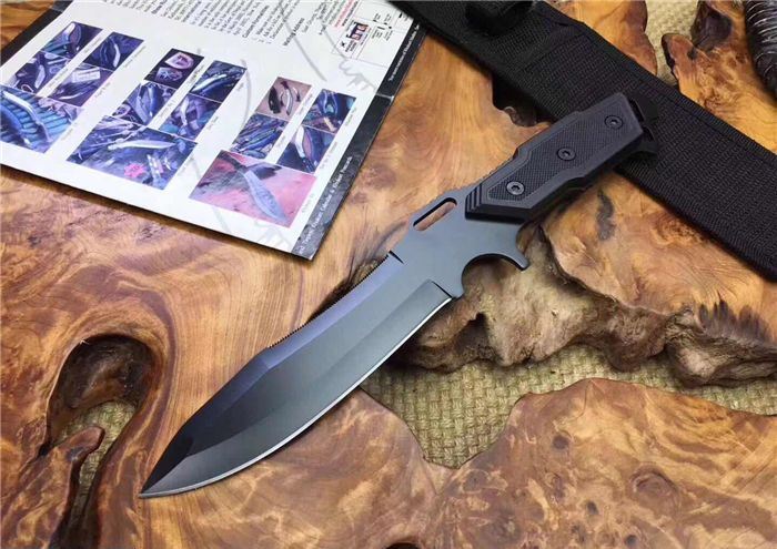 战鹰搏击直刀 全长:30.5cm 刃长:14cm 刃宽:3.8cm最宽处 刃厚:3mm 柄长:13cm 表面: 黑色 刃材:5Cr15Mov 硬度: 57HRC 柄材:ABS纤 重量:358克含包装 包装:尼龙套