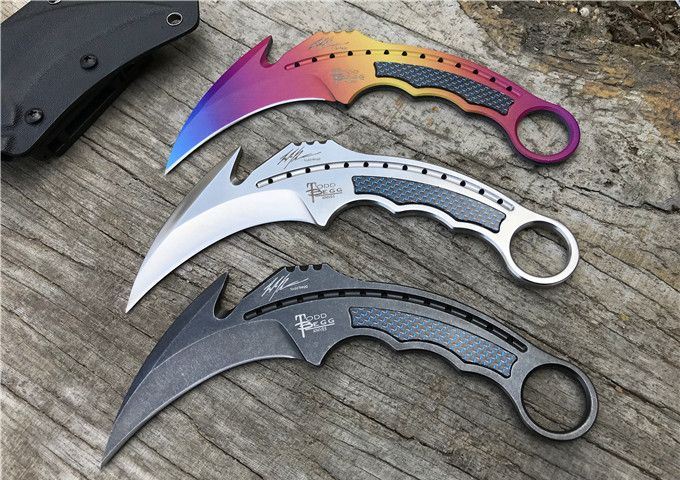 托德贝格夜鹰爪刀(三色) 全长:20CM 刃长:9CM 刃厚:0.5CM 刃材料:D2 硬度:59-60HRC 表面:砂光 刀套:美国进口Kydex 重量:250克(带鞘) 刀柄:碳纤 其它:配精品礼品盒