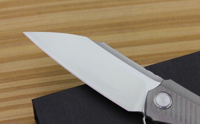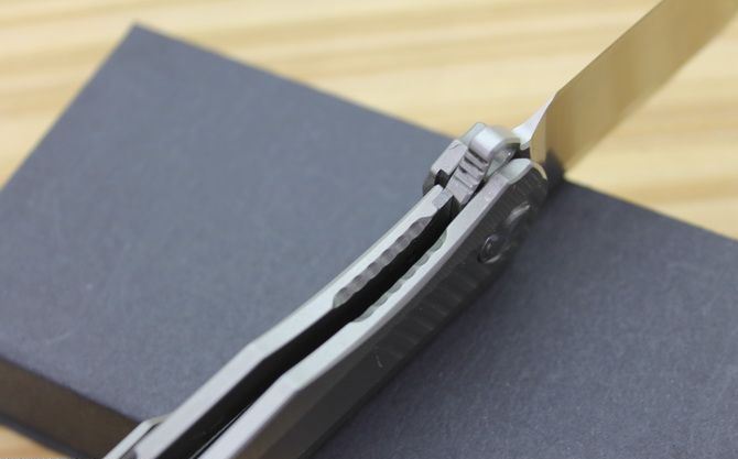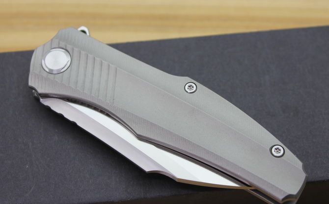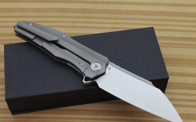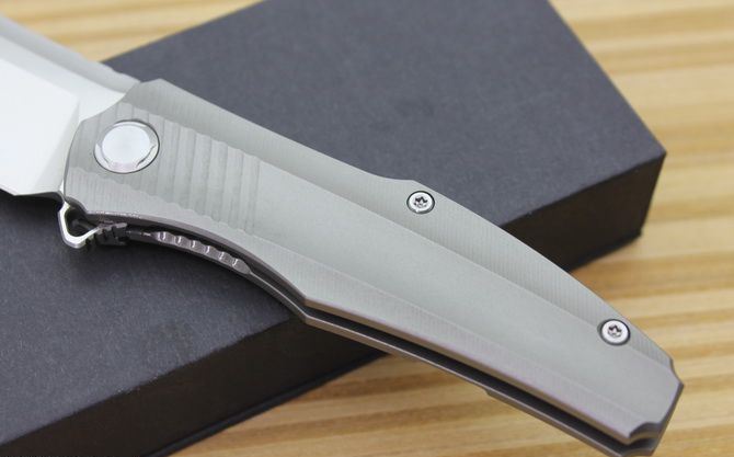 黑鸟超音速折刀 型号:TS50 全长:20.2cm 刃长:9cm 柄长:11.2cm 刃最宽:3.1cm 刃厚:4mm 刃材:D2钢精细沙光处理 刀重: 120g 总量:200g含包装物 硬度:59-60HRC 表面:手工磨沙 柄材:正反面CT-4 钛柄 刀夹:超弹力钛夹 锁型:线锁 螺丝:所有螺丝420不锈钢硬度HRC45,全CNC精雕加工,内置轴承 结构:线锁锋利