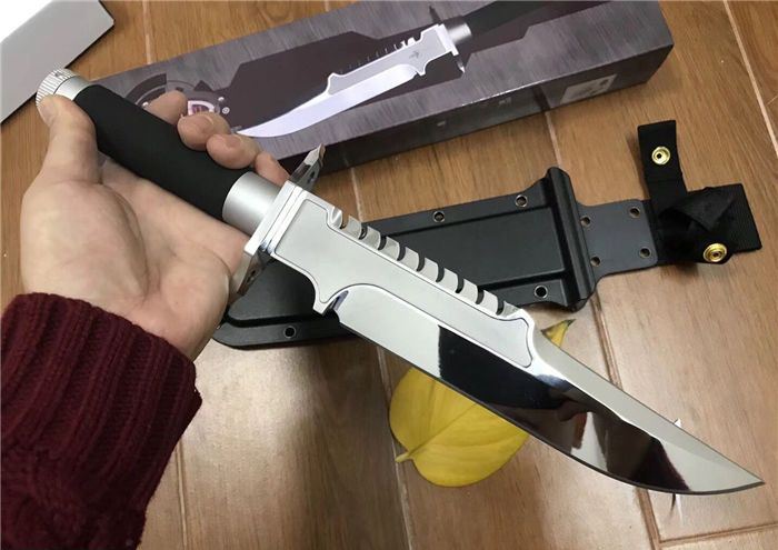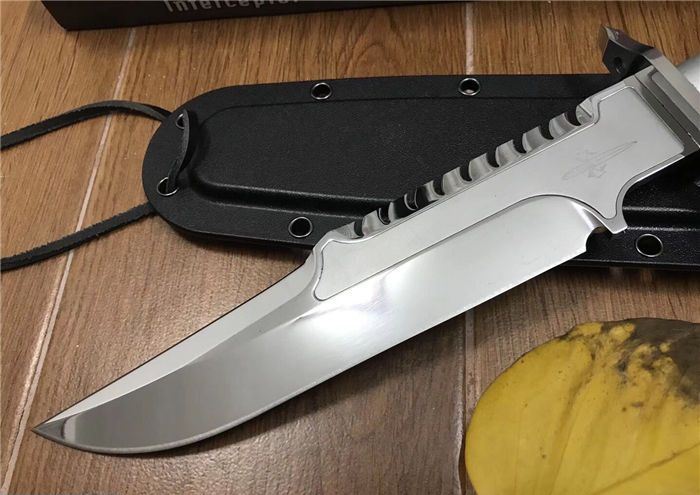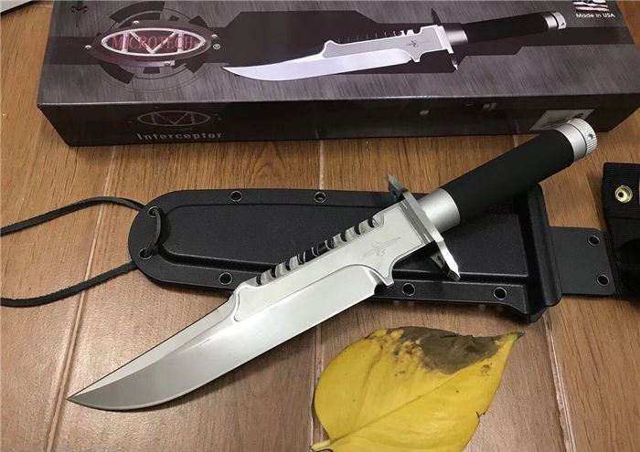 微技术剑标拦截者直刀(超镜光版) 全长:36.5CM 刃长:23.4CM 柄长:12.9CM 最大宽度:4.3CM 刀厚:0.55CM 刃面:超镜光 毛重:668克(含k鞘) 钢材:7CR15 钢硬度:57 刀柄:配特殊防滑涂层 手柄内配救生工具组 指南针 密封圈 K鞘 牛皮绑都绳 彩盒