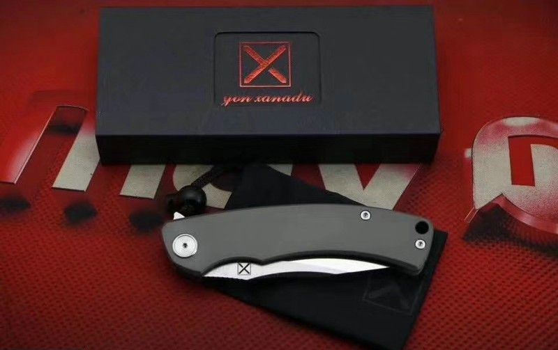 代号X钛合金折刀 全长:222毫米 刃长:98毫米 闭合:148毫米 刃厚:4毫米 刃宽:30毫米 刃材:D2(真实100%D2,可以测试) 柄材:钛 硬度:59-60HRC 系统:陶瓷珠轴承系统 净重:169克 其他:配礼品黑盒子